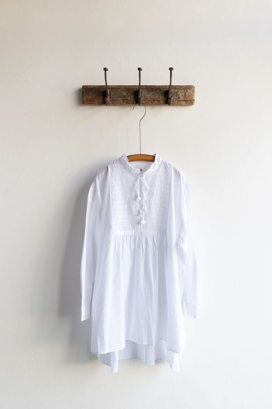 maison de soil メゾンドソイル | 60s ORGANIC CAMBRIC WITH EMB BANDED COLLAR EMB TUNIC Col : WHITE