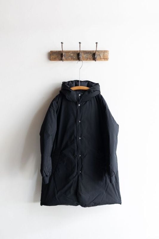 ARMEN アーメン | POLYESTERxCOTTON REVERSIBLE DOWN SNAP FRONT HOODED MIDI COAT Col : BLACK