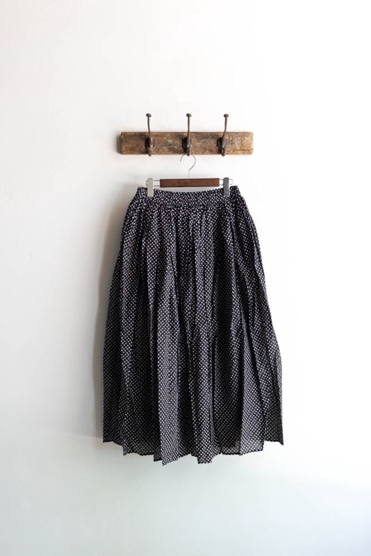 maison de soil メゾンドソイル | 80'S COTTON SMALL SQUARE BLOCK PRINT GATHERED SKIRT Col : NAVY×LT.BEIGE