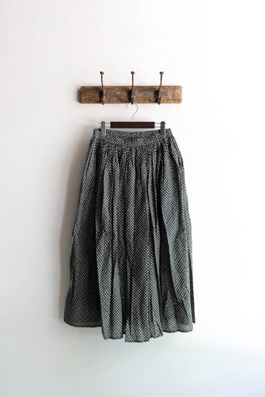 maison de soil メゾンドソイル | 80'S COTTON SMALL SQUARE BLOCK PRINT GATHERED SKIRT Col : DK.GREEN×LT.BEIGE