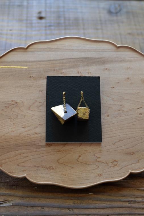 丸山聡子 | ピアス 花梨 (四角) / 金箔 [Y.P-153]