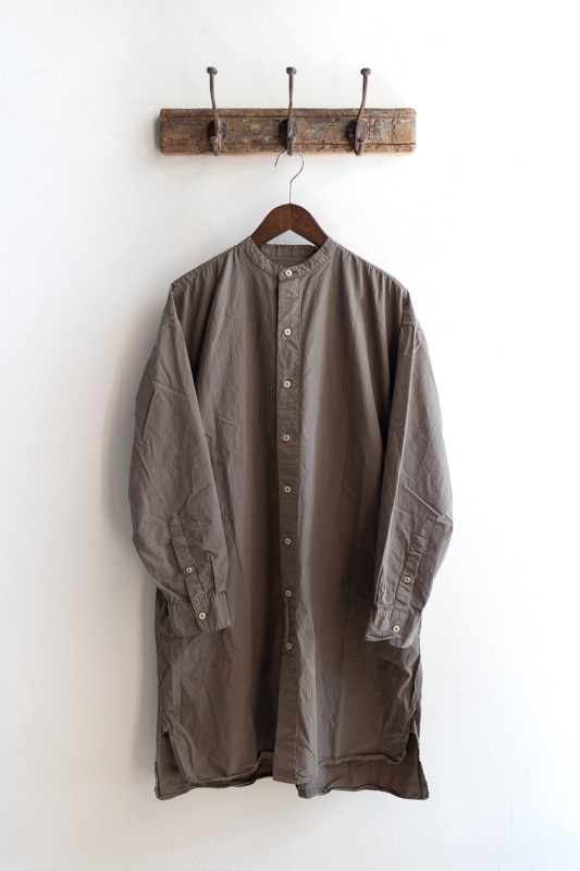 ARMEN アーメン | 40'S POPLIN UTILTY BANDED COLLAR LONG SHIRT Col : SMOKE GREY