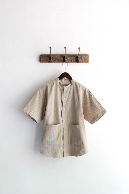 nisica ニシカ | バンドカラー ルーズフィットS/Sシャツ Col : ストライプイエロー