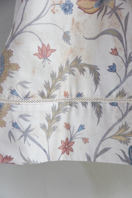 素材は古いカーテンやソファーに使われているような生地をイメージした花柄で