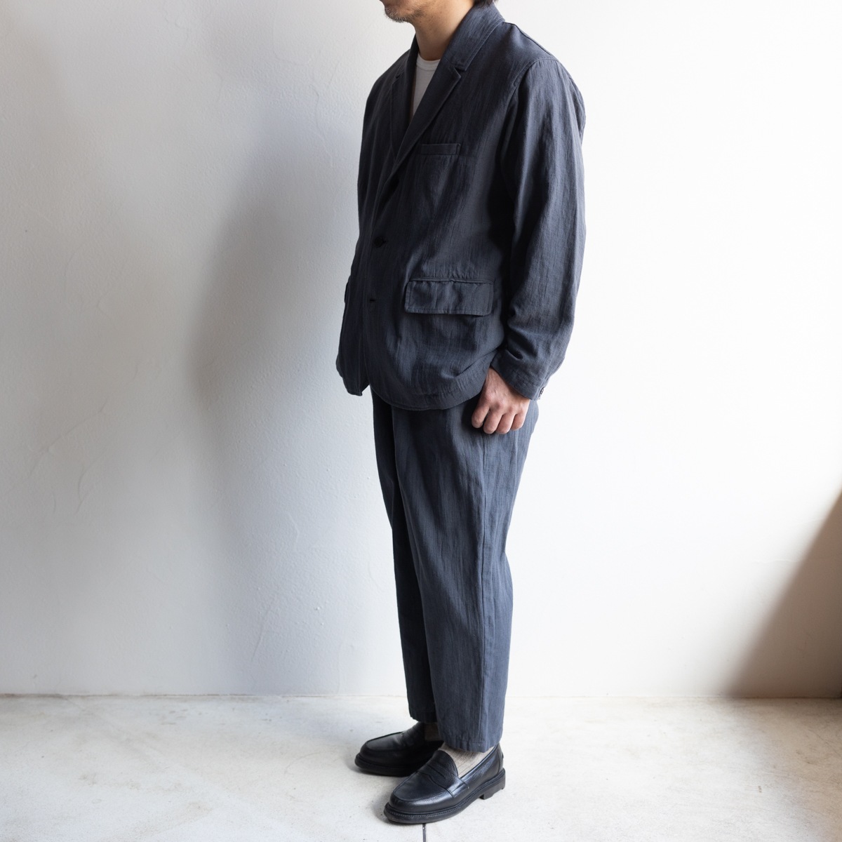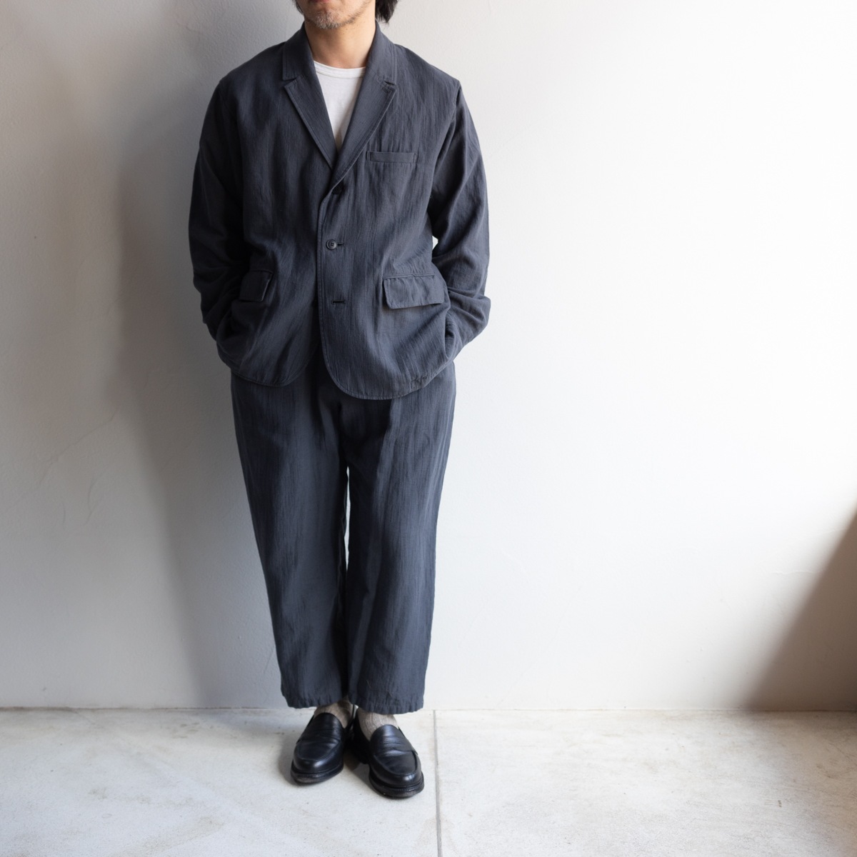 皺感もそのままに クタッとした抜け感があります。