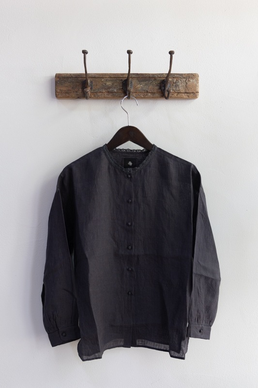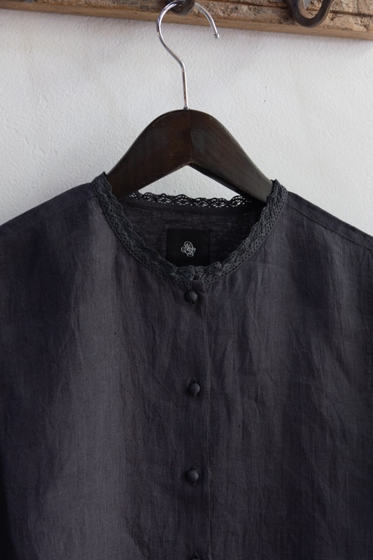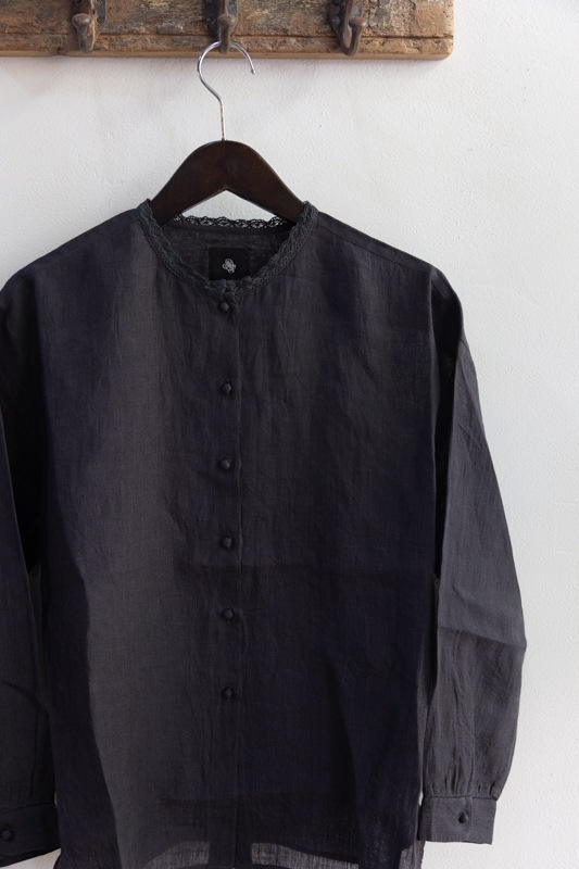 maison de soil メゾンドソイル | 80'S POWER LOOM LINEN PLAIN LACE BUTTON SHIRT Col : DK.CHARCOAL