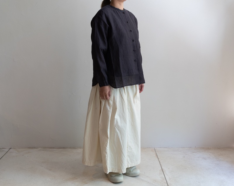 素材は薄手のリネン素材で、風を感じるリラックス感のある着心地。