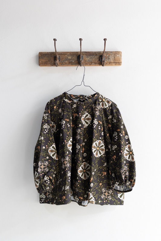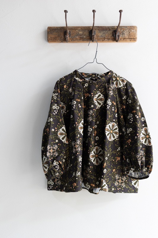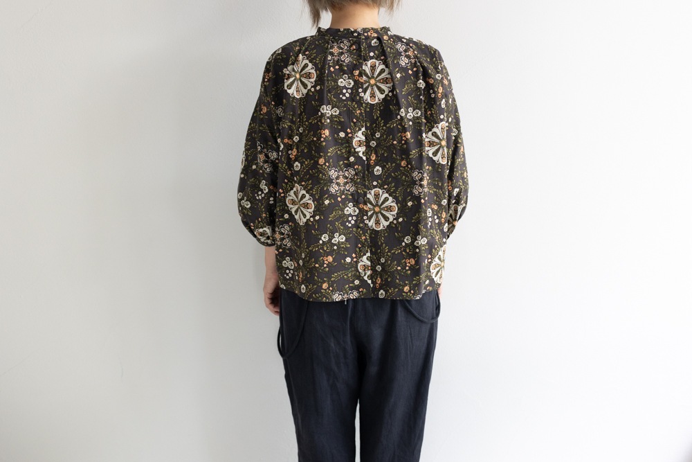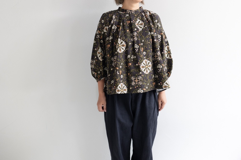 こちらは適度にギャザーを入れた女性らしいスモックタイプのブラウスで