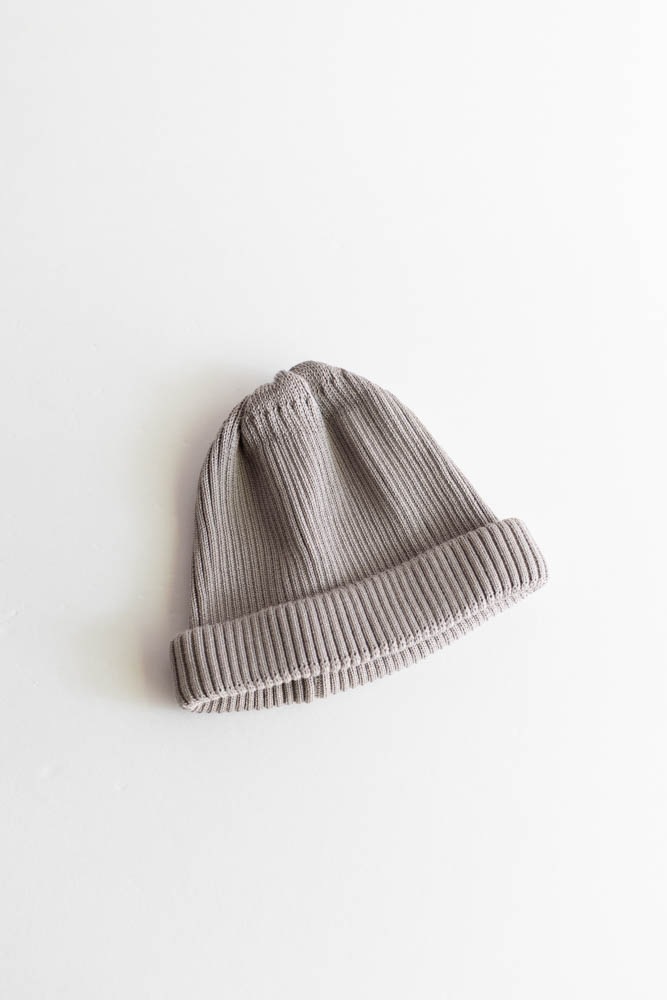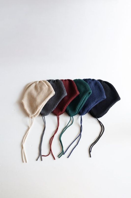 こちらは浅めに設計されたリブ編みロールアップビーニー。