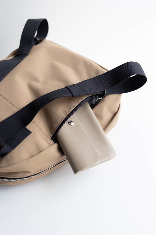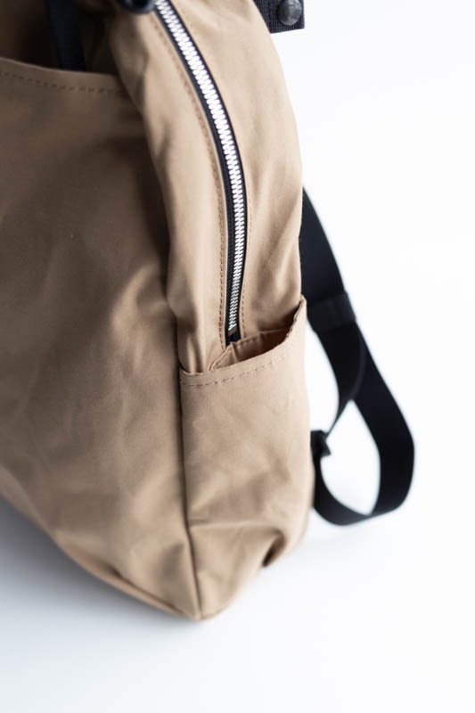 外側には両サイドにポケットが2つ、さらには背面にもポケットが付いているのでお財布などの収納もでき安心です。
