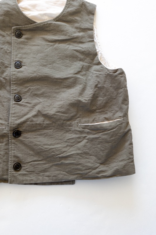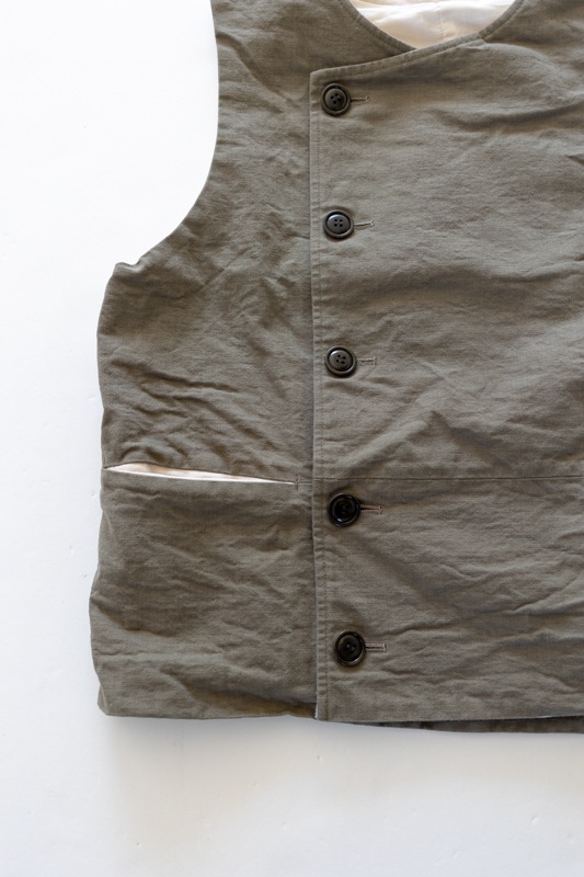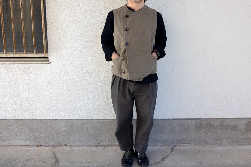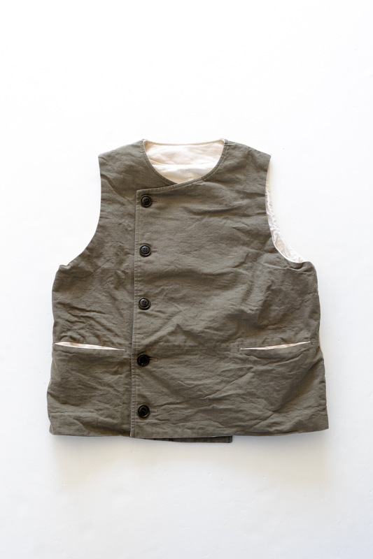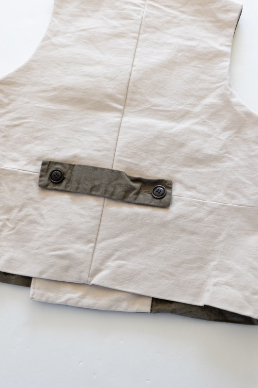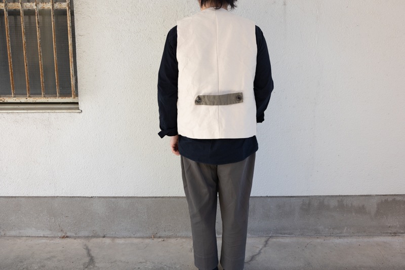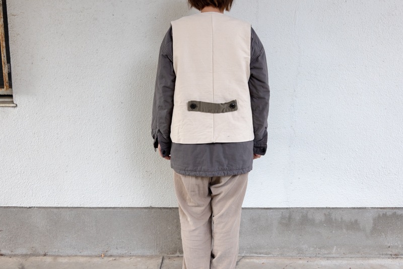 前身頃がキャンバス素材、後身頃が生成りのフランネル素材を