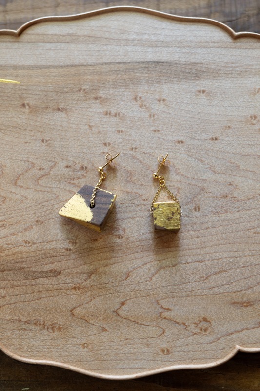丸山聡子 | ピアス 花梨 (四角) / 金箔 [Y.P-153]
