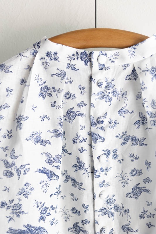 適度にギャザーが入り、後ろはスナップボタンになった