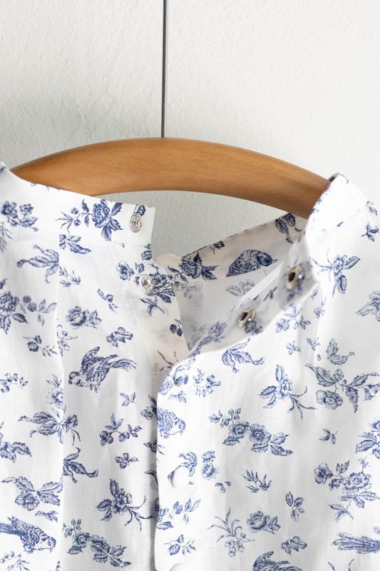 薄手のリネン素材に鳥や花などプリントを施した