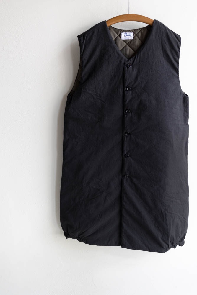Yarmo ヤーモ | Quilt Lined Long Vest Col : Black
