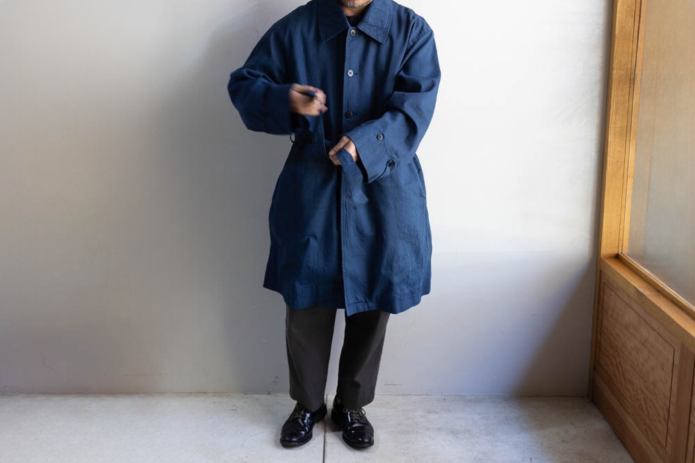 フレンチワークウェアを彷彿させる雰囲気のコート。