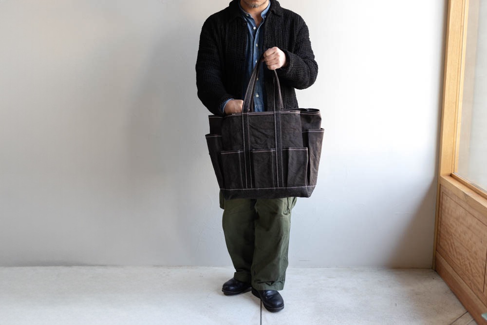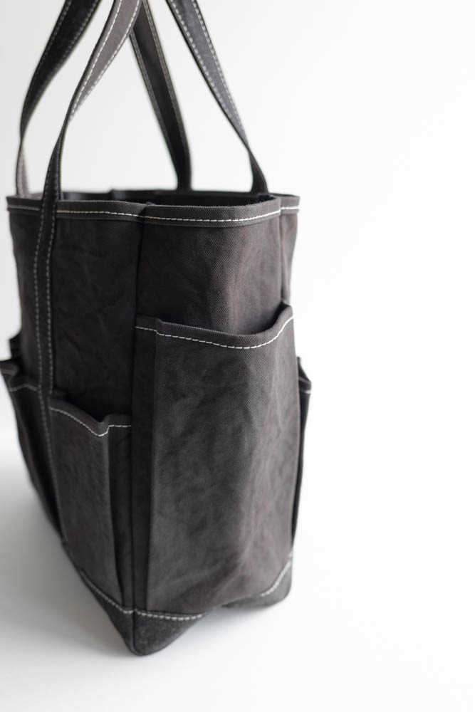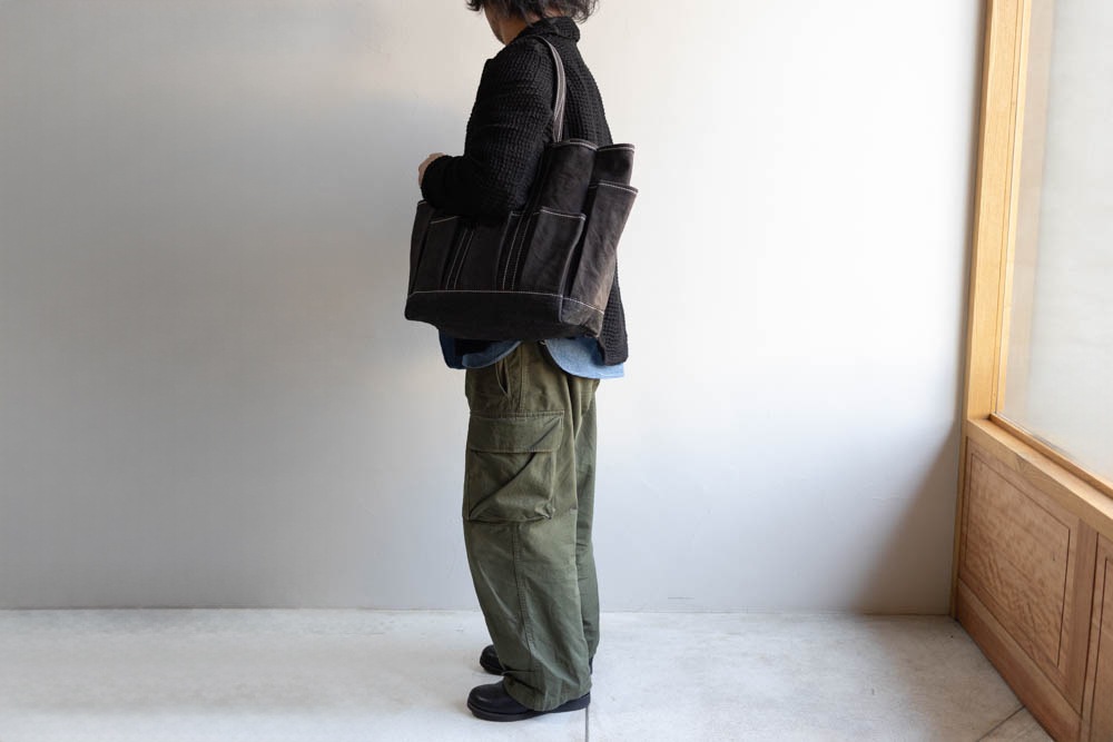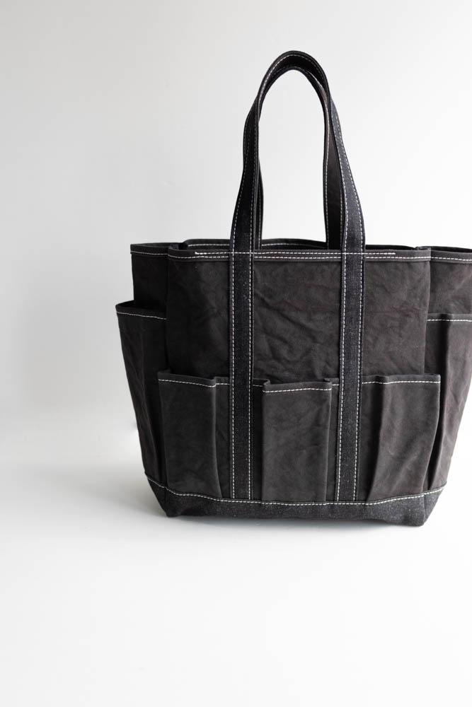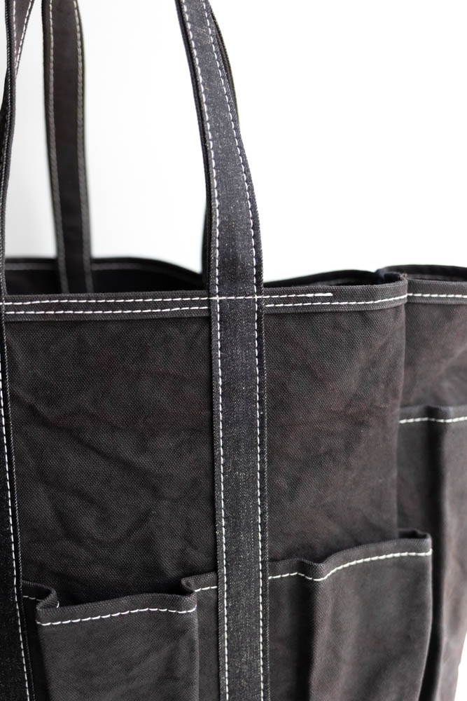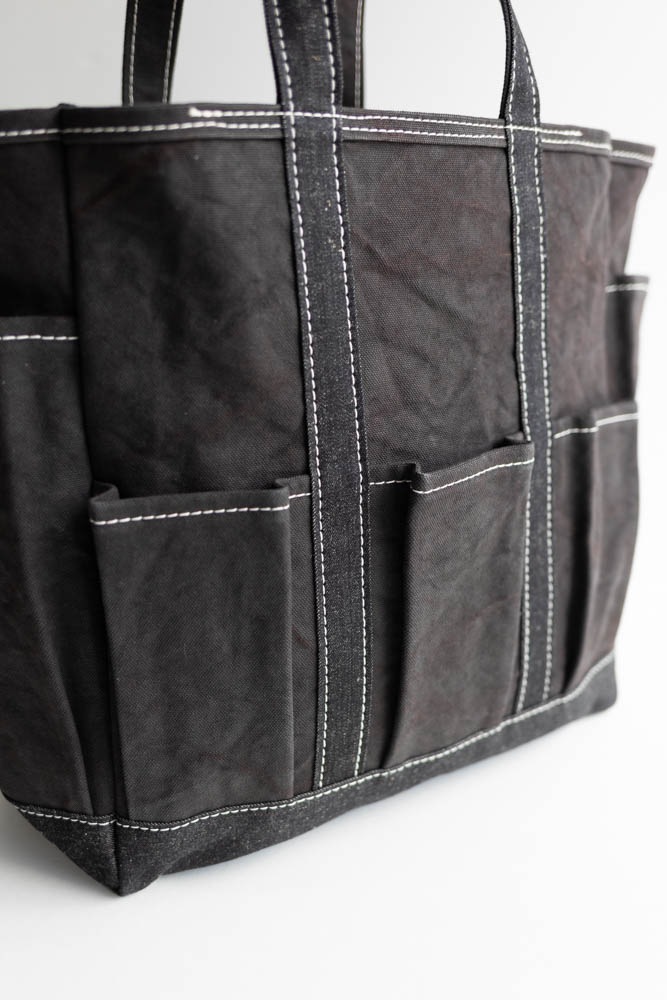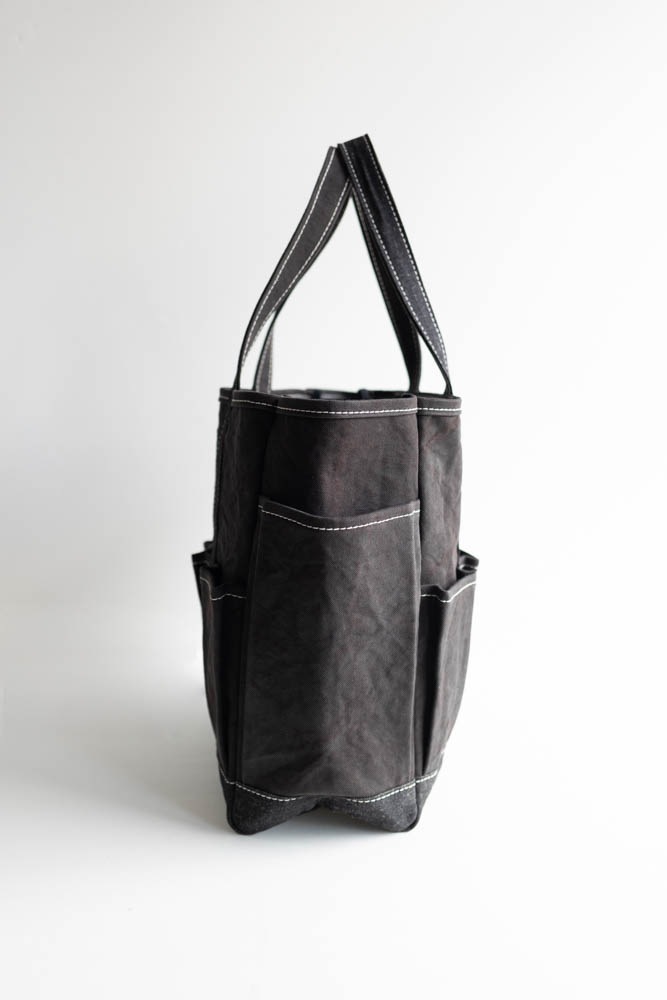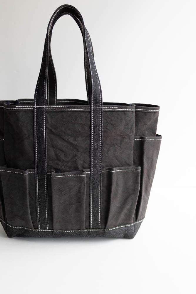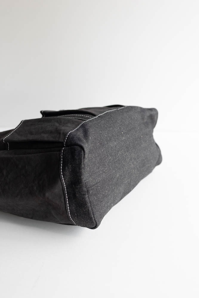 持ち手、底面にはコットンヘンプのブラックデニムを使用しています。