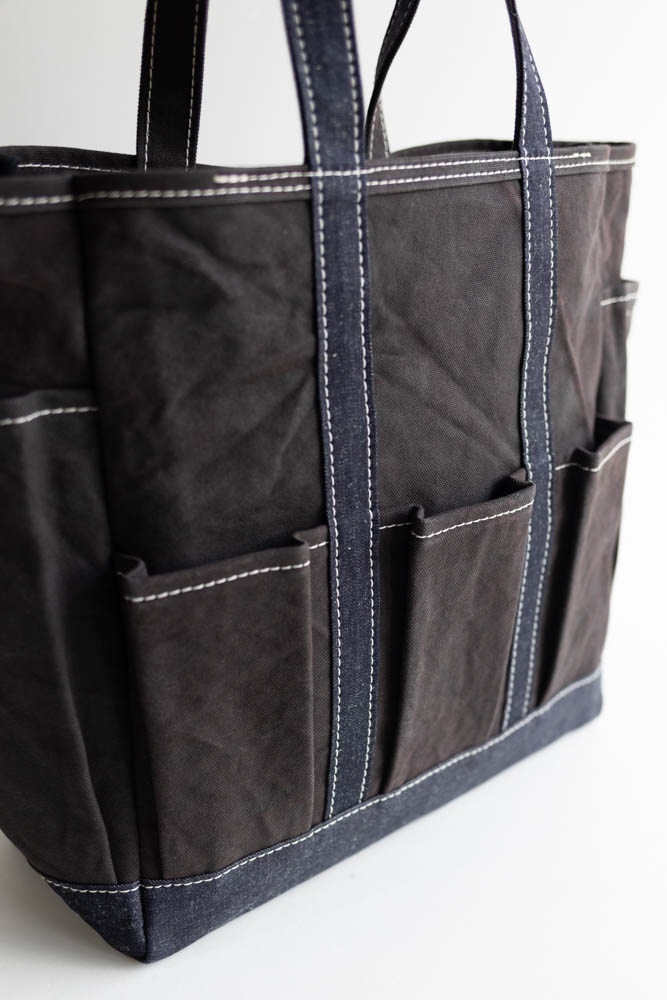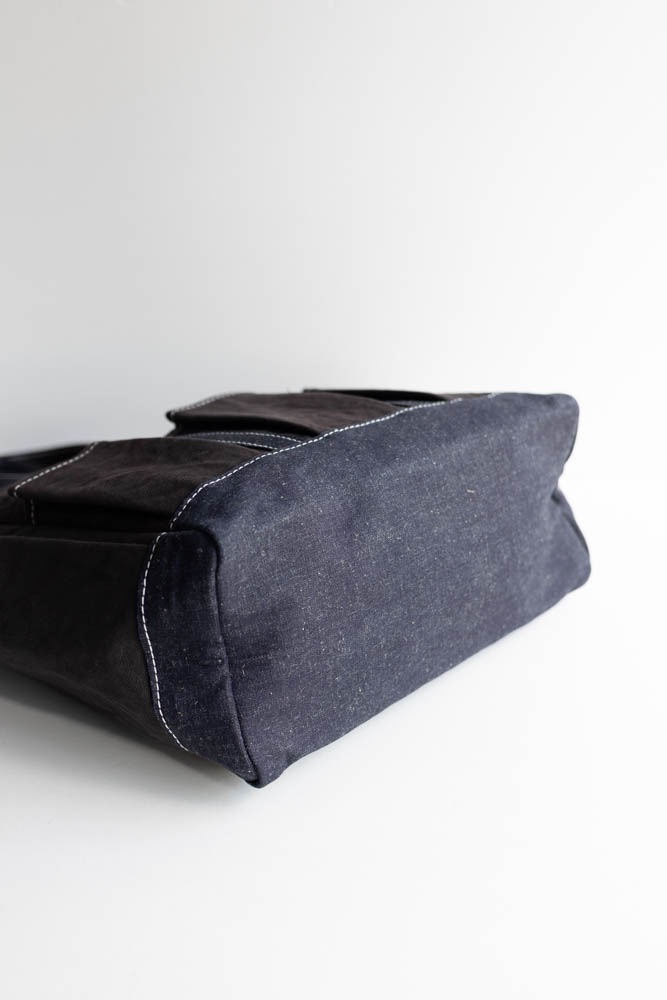 持ち手、底面にはコットンヘンプのインディゴデニムを使用しています。