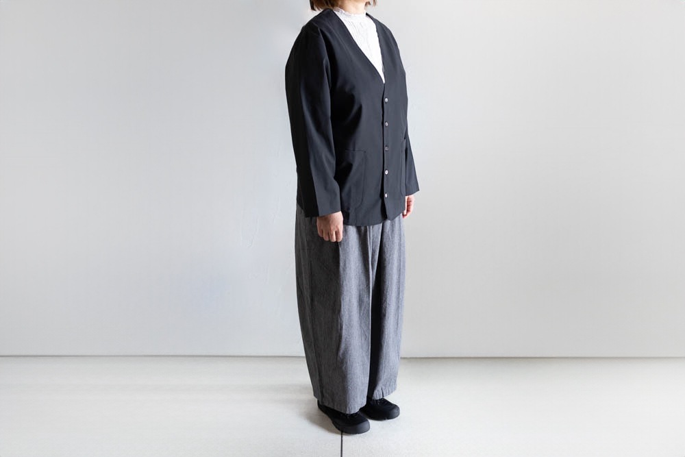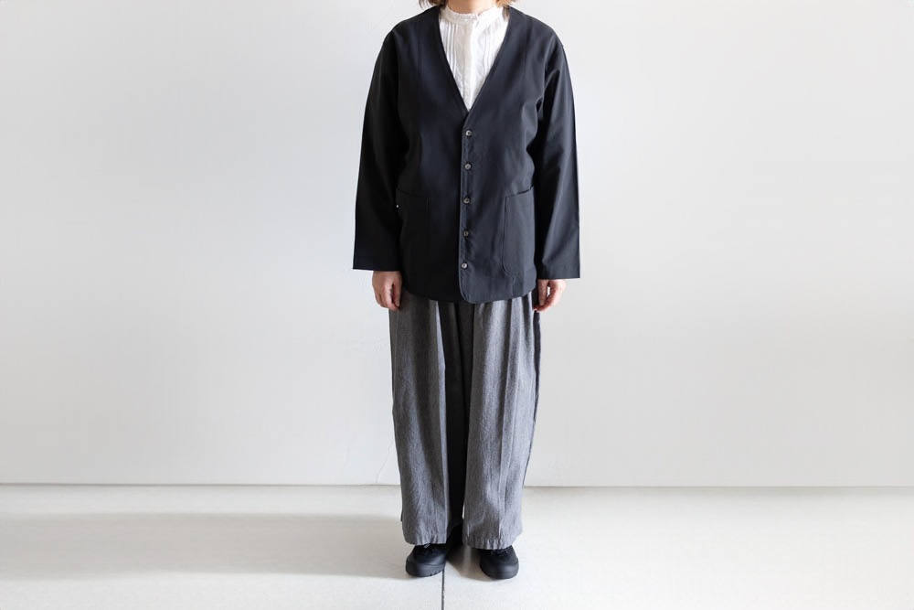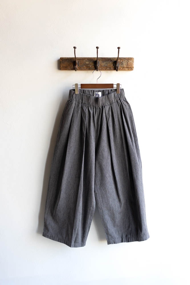 薄手のコットン素材でタックが入るワイドなシルエットが特徴。