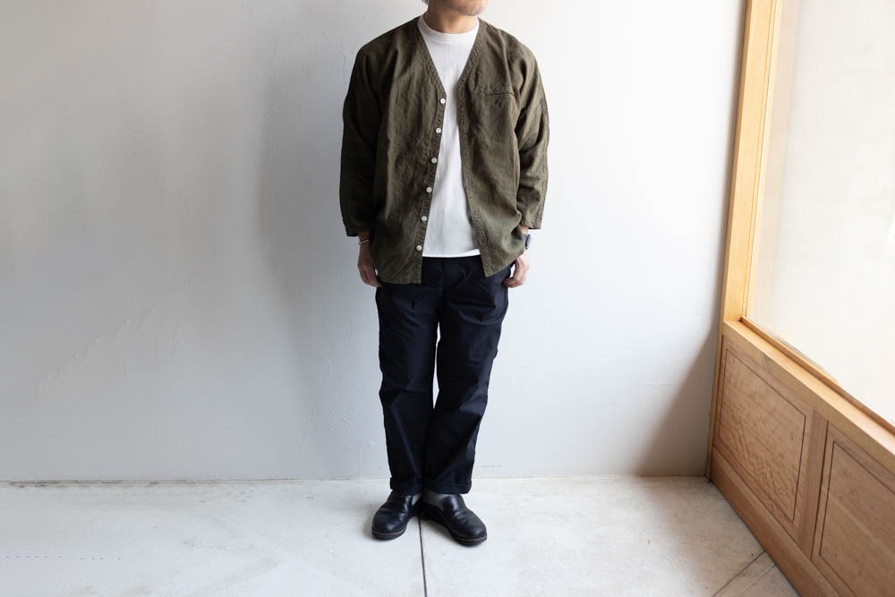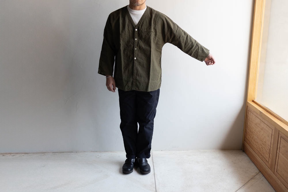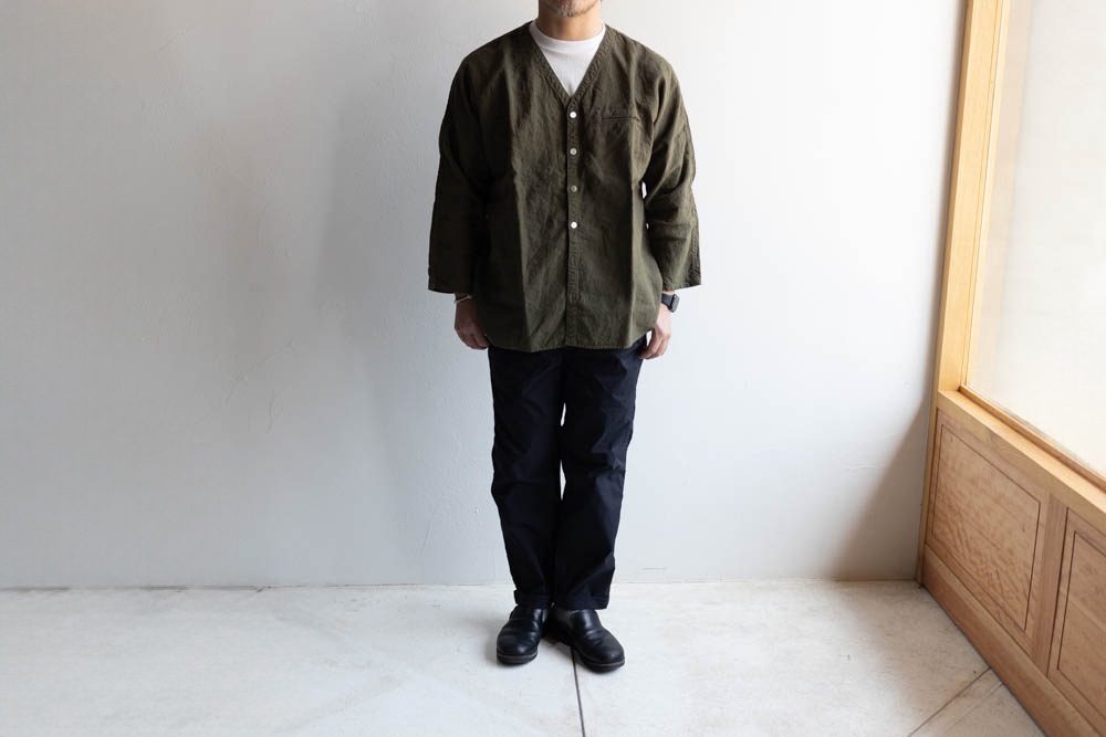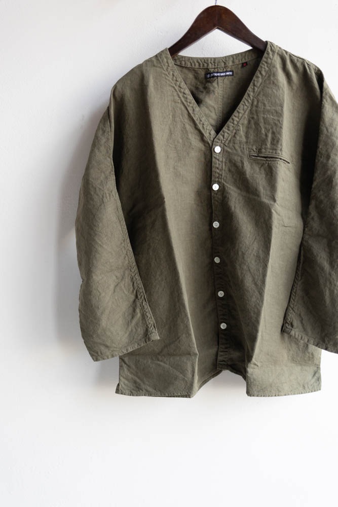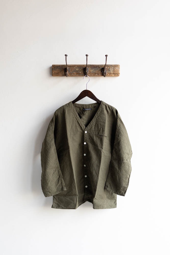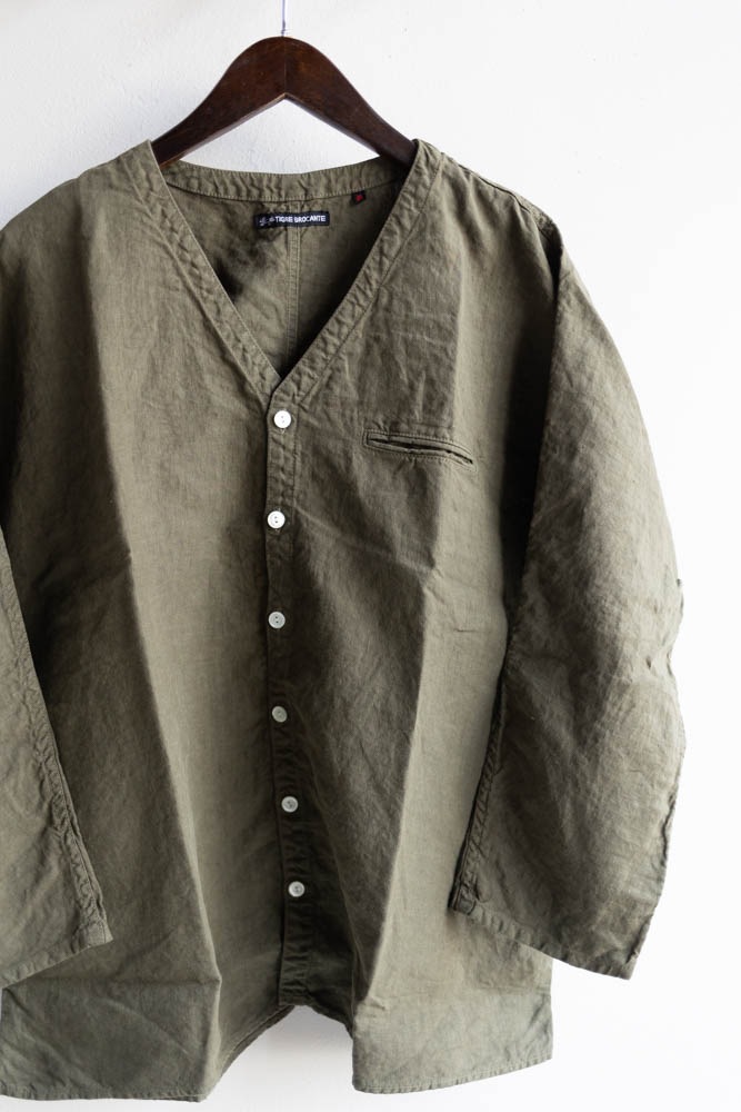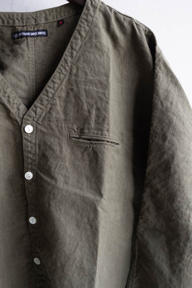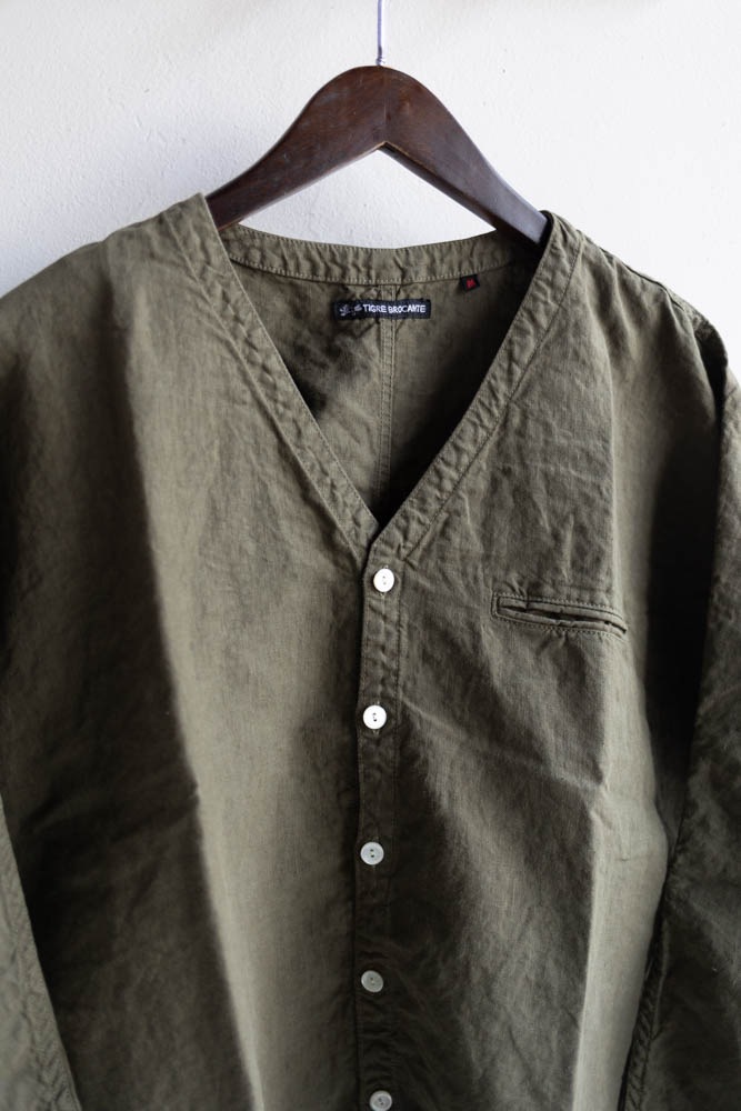 TIGRE BROCANTE ティグルブロカンテ | 40リネン Vネック ストールマンシャツ Col : Khaki