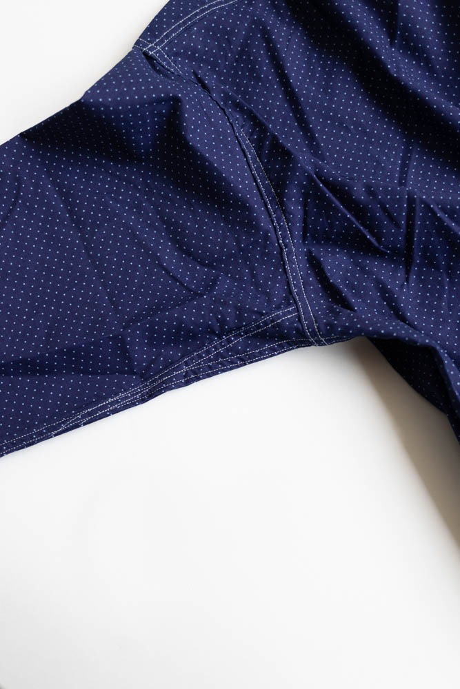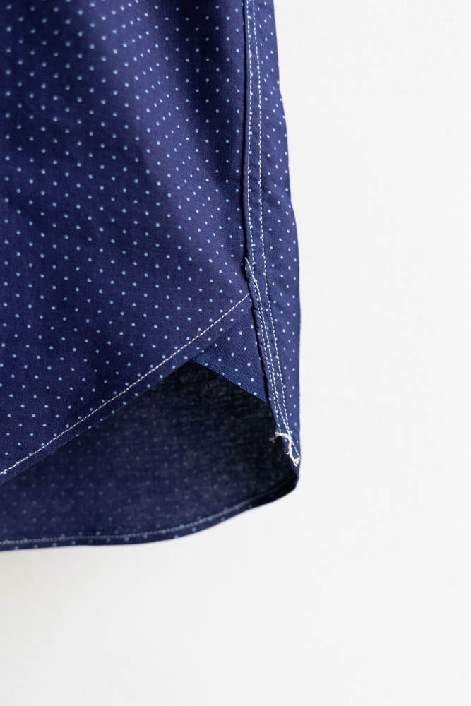 きれいな水玉ではないこの歪なドットこそが、当時のインディゴ抜染による技法を彷彿。