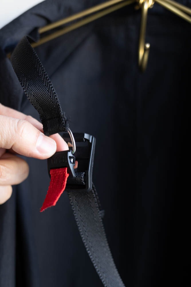 引っ張っても外れる事がなく、バックルのつまみを持って引くだけでワンタッチで外れるのが特徴です。