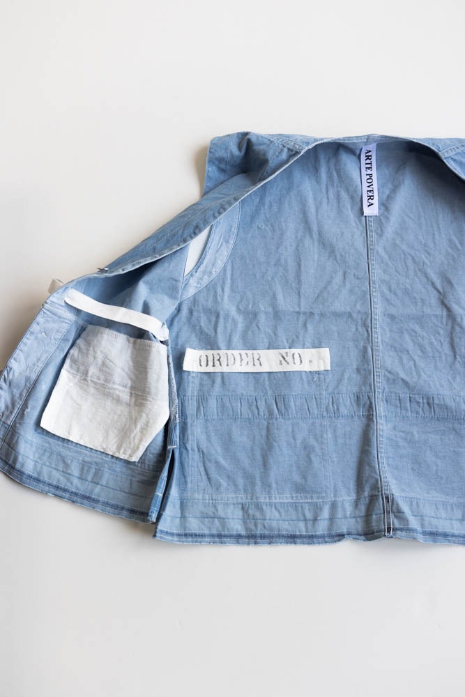 古いワークウェアや軍物、古着、デッドストックの生地、ボタン、シーツ、袋など