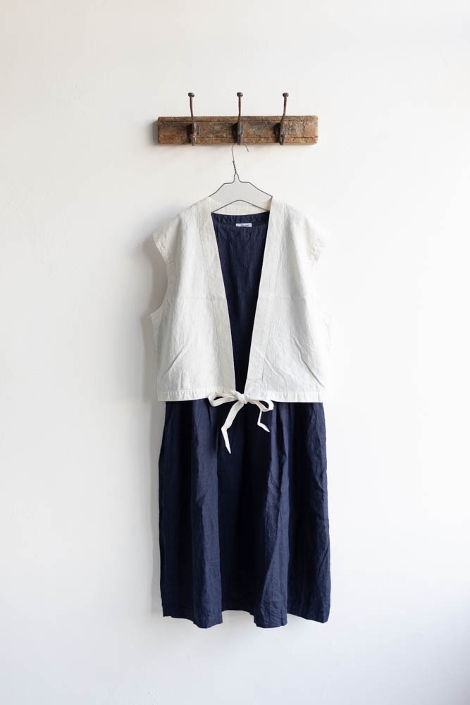 コットンリネン素材に製品染めを施した新型のボレロジレ。