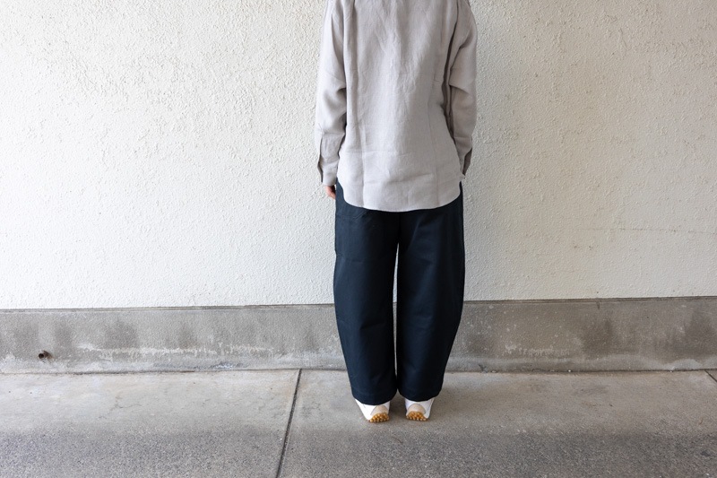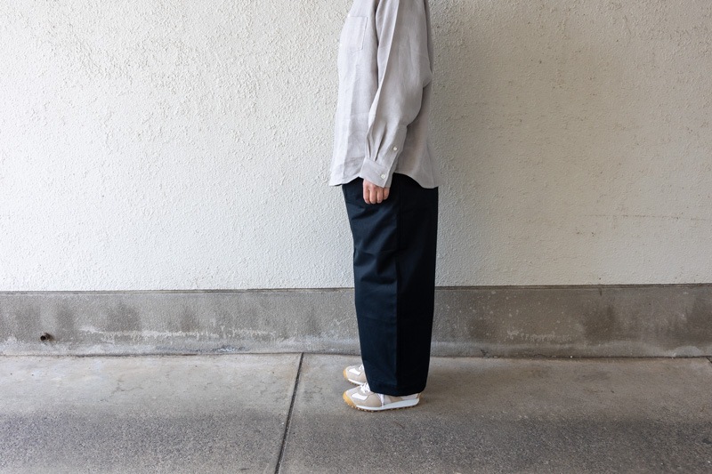 ロングセラーとして作り続けられている定番ワイドトラウザー。