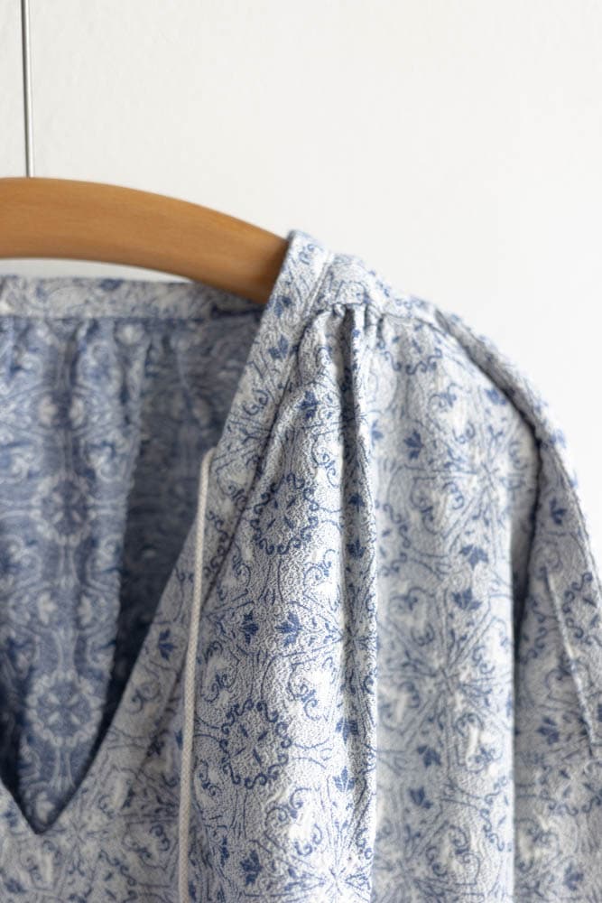 肩、袖にギャザーを入れたドロップショルダーになっています。