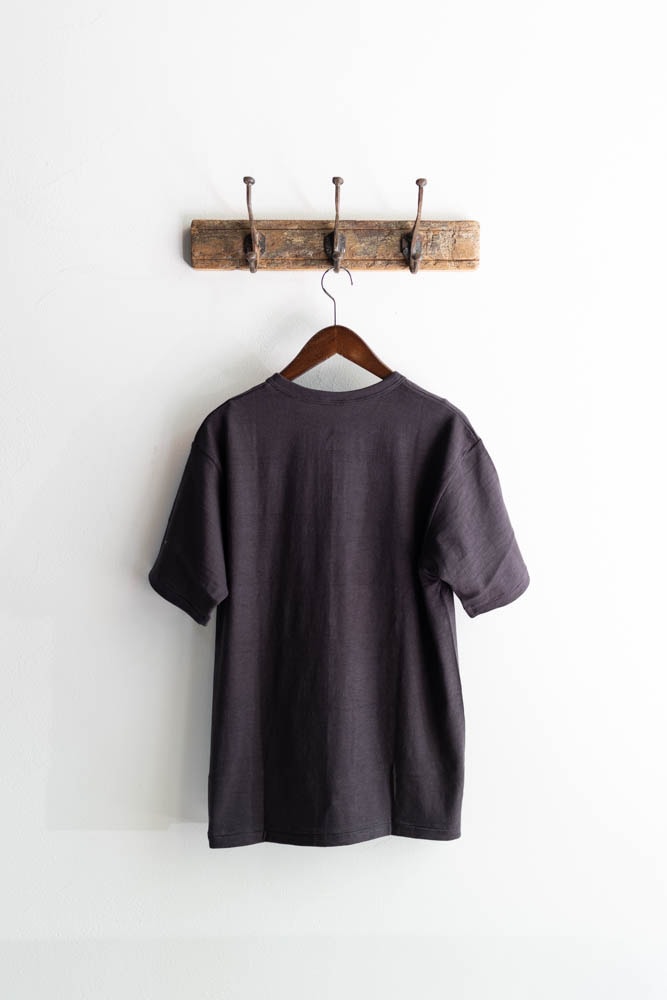 着込むほどうっすらと横ムラが浮かび上がり風合いが増していくのがこのTシャツの特徴です。