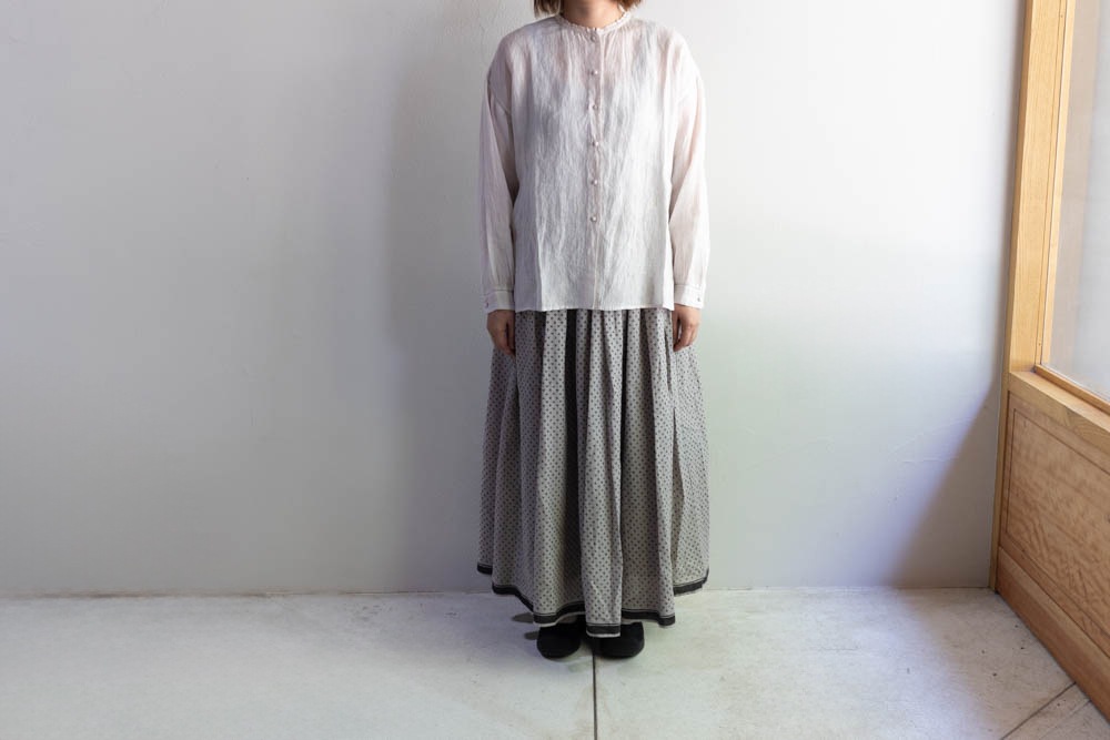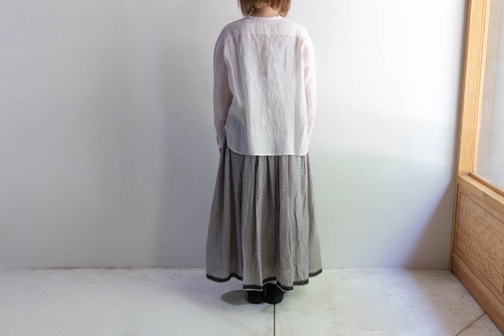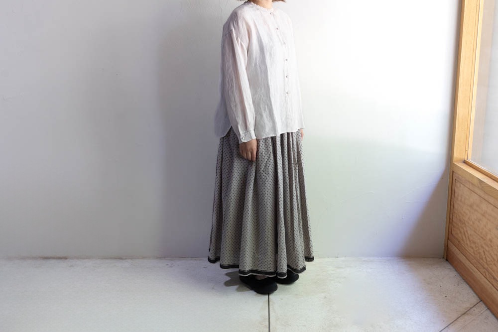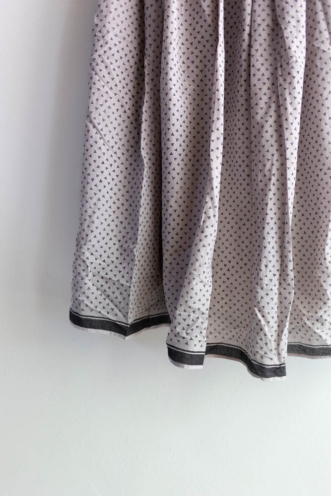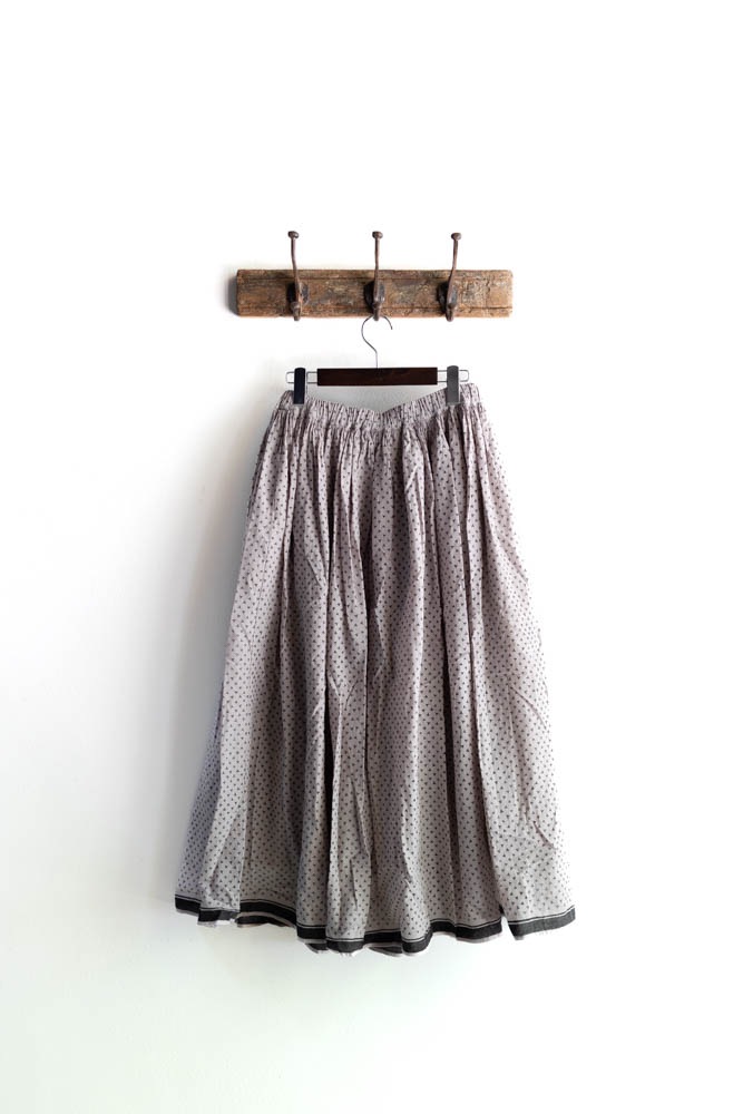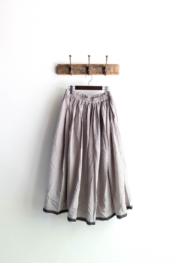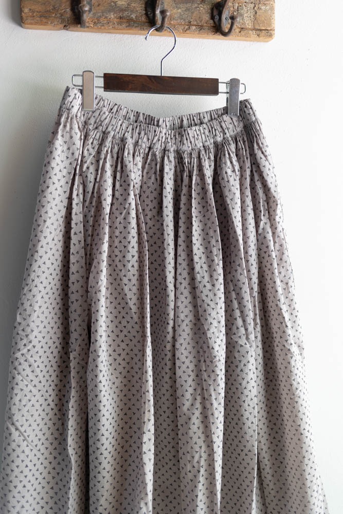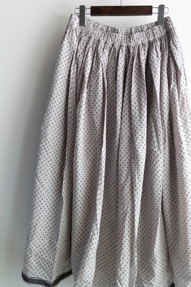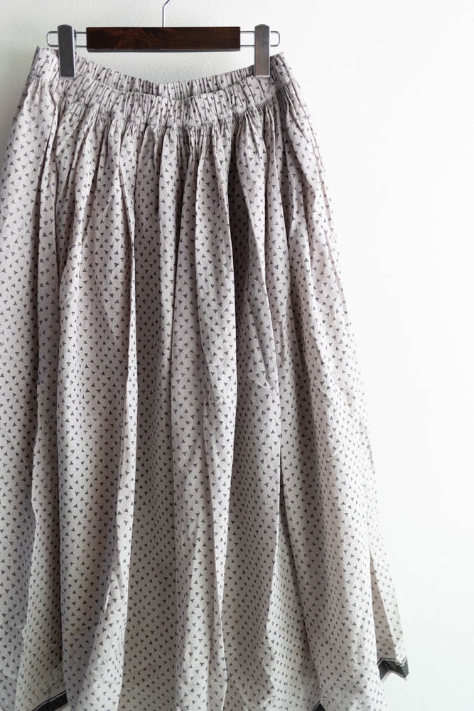 maison de soil メゾンドソイル | 80s VOILE TRIANGLE BLOCK PRINT GATHERED SKIRT Col : MILKY GREY / BLACK PRINT