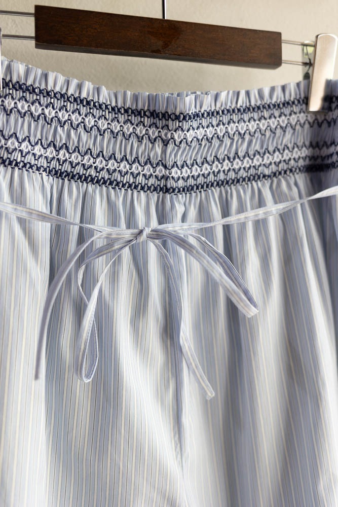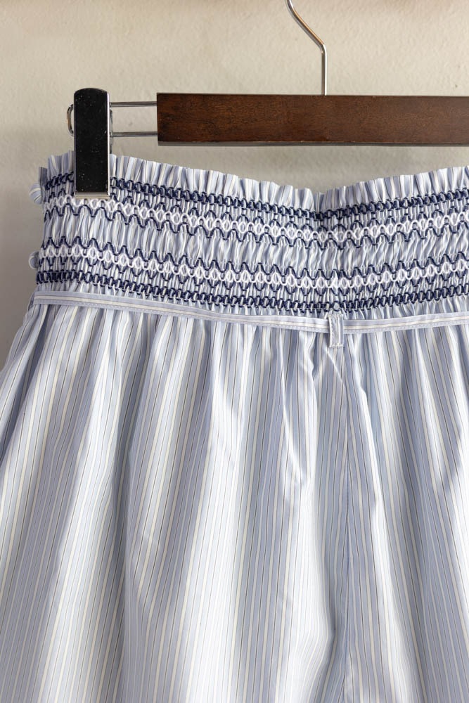 ウエストに施した刺繍(スモッキング)がアクセント。