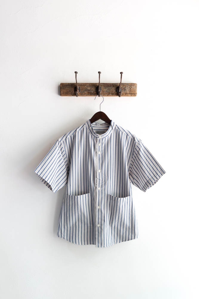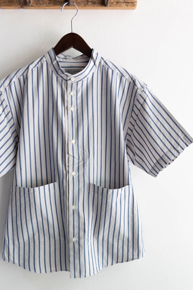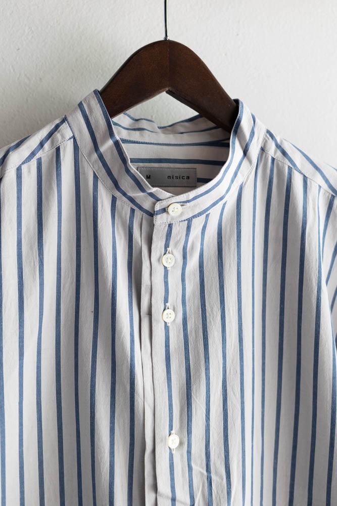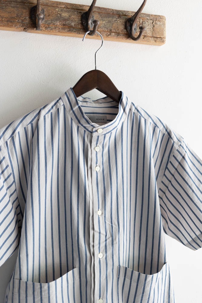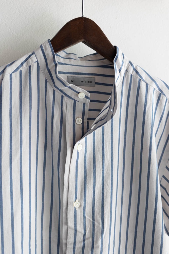 nisica ニシカ | バンドカラー ルーズフィットS/Sシャツ Col : ストライプブルー