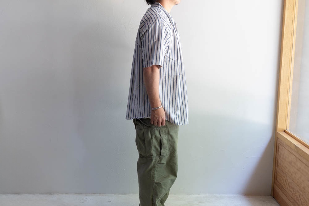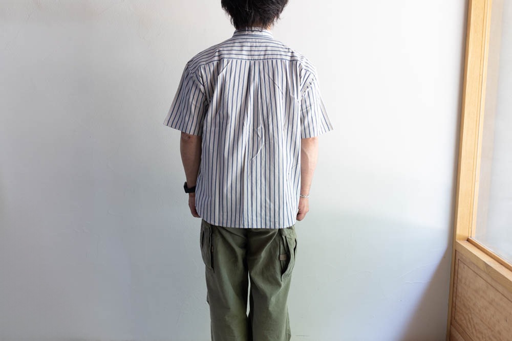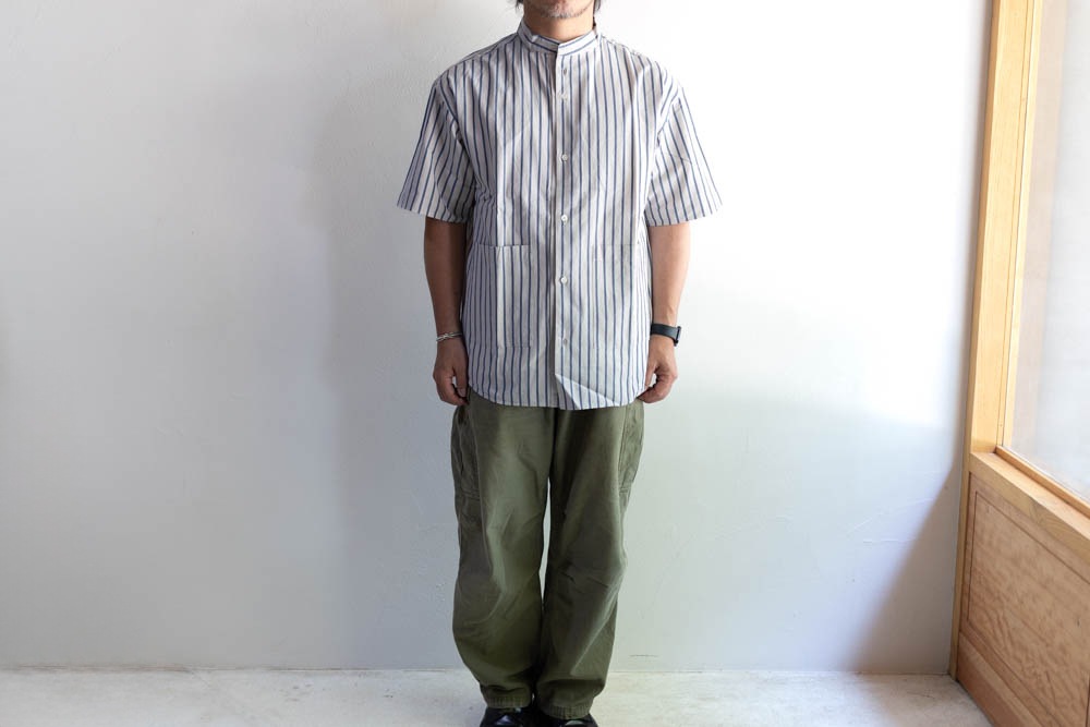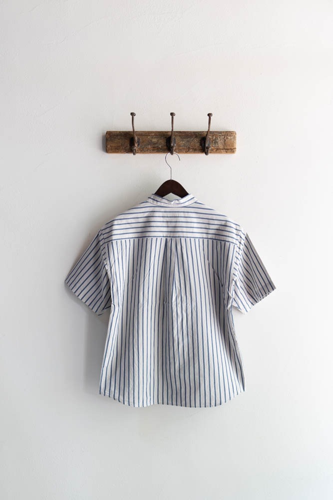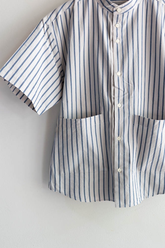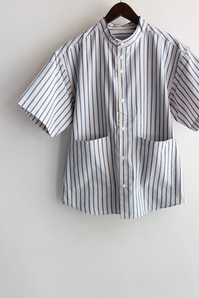 nisica ニシカ | バンドカラー ルーズフィットS/Sシャツ Col : ストライプブルー