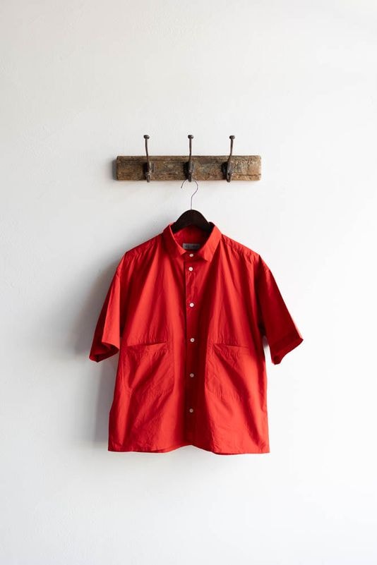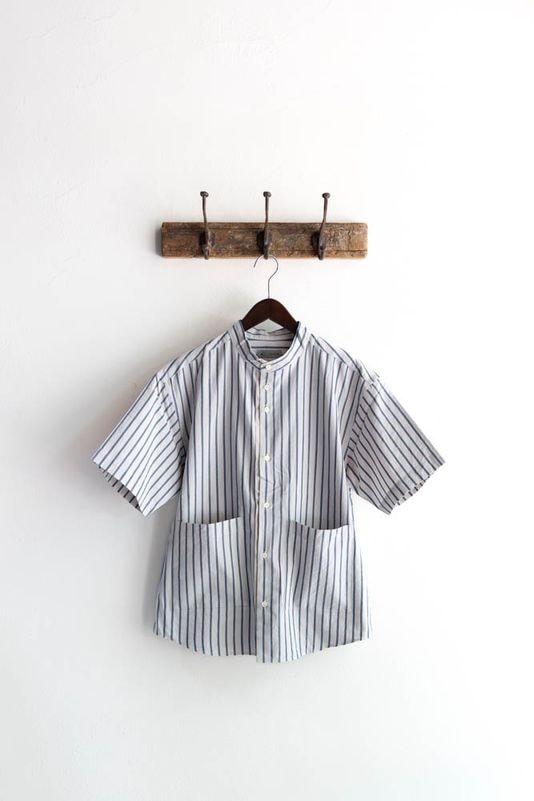 nisica(ニシカ)バンドカラーシャツはルーズフィットの半袖タイプ。