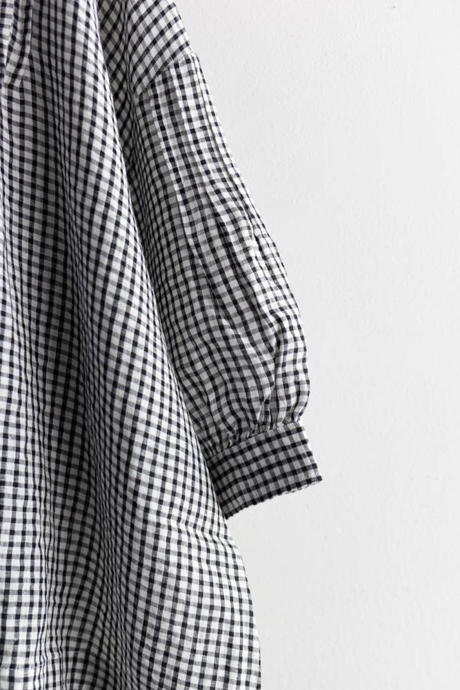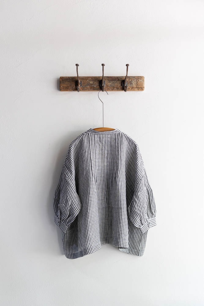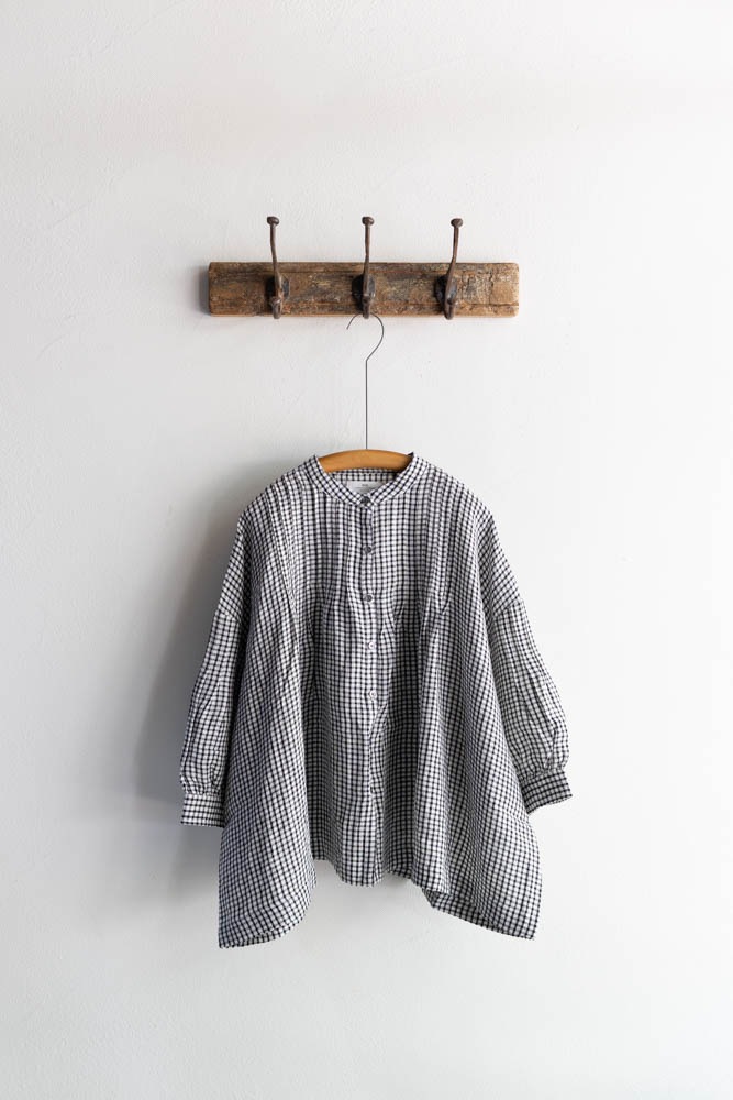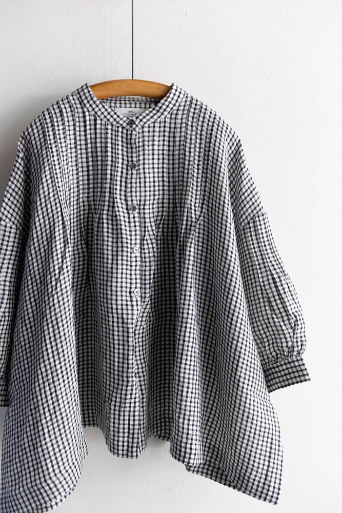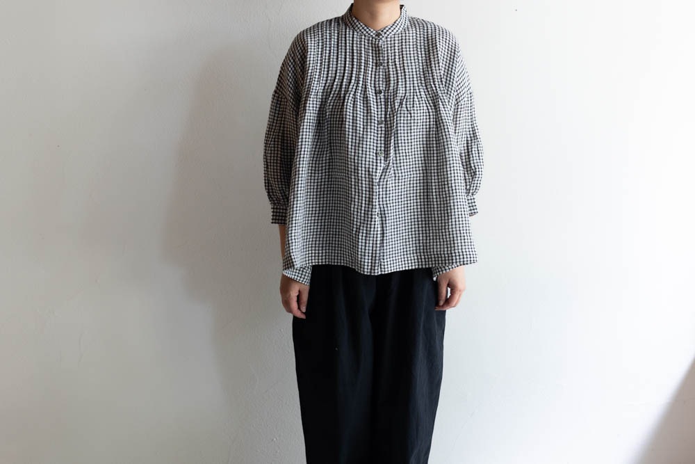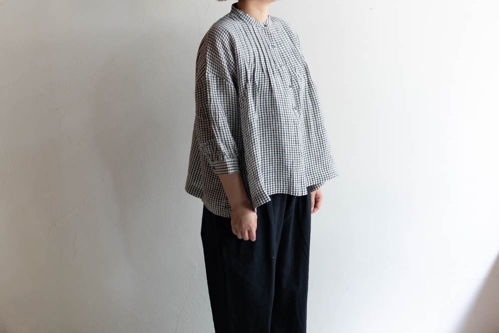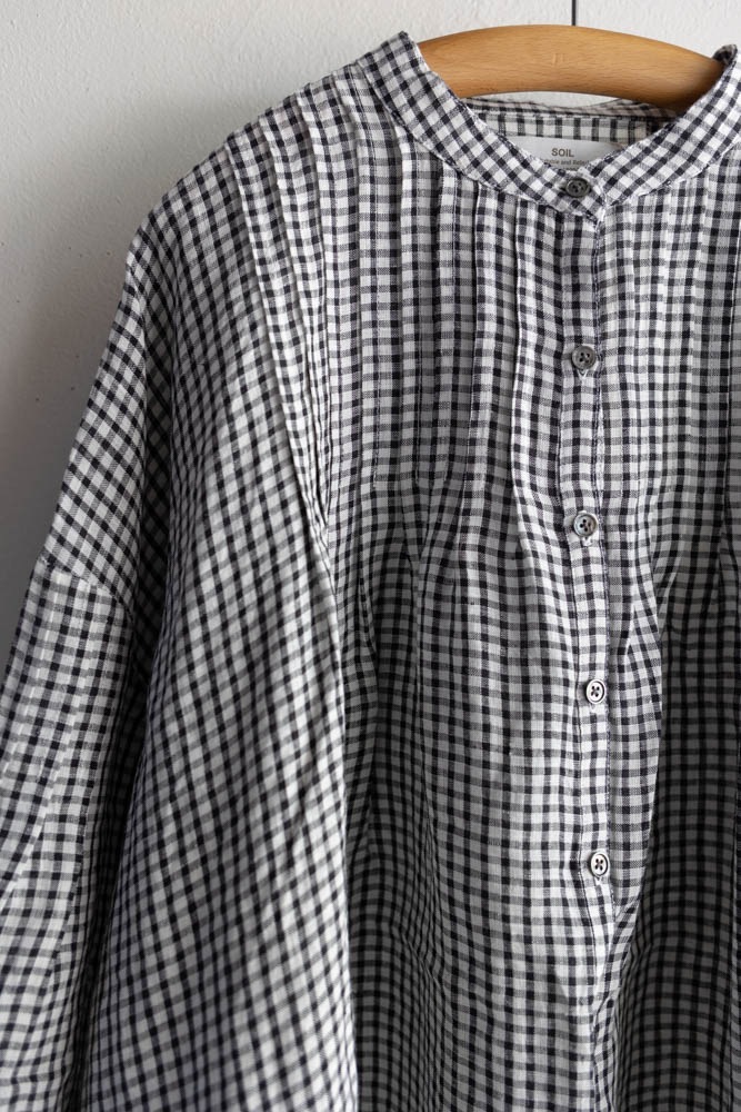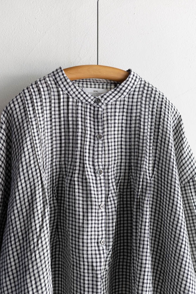 SOIL ソイル | 60s LINEN CHECK BANDED COLLAR 3/4SL PINTUCK SHIRT Col : OFF WHITE×BLACK CHECK