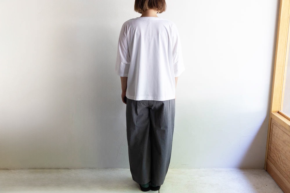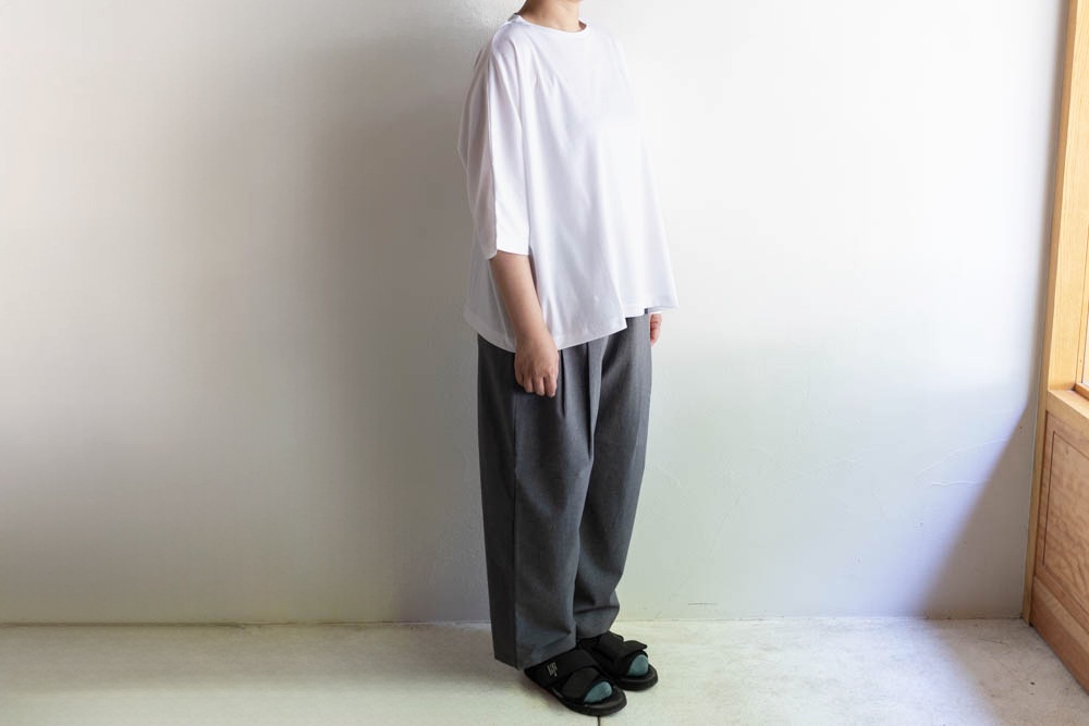 2タックのボリューム控えめのコクーンシルエットが特徴で