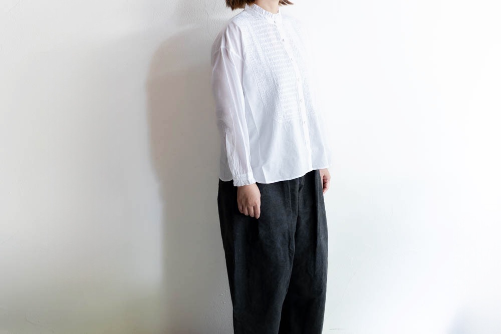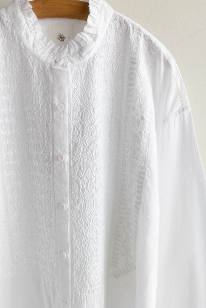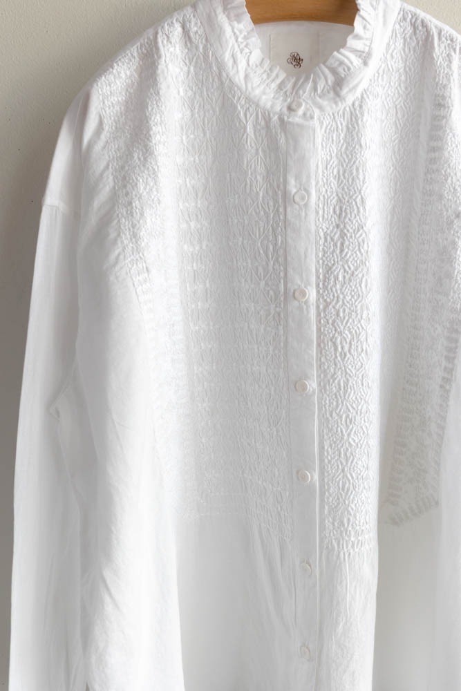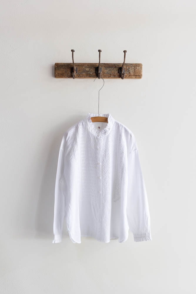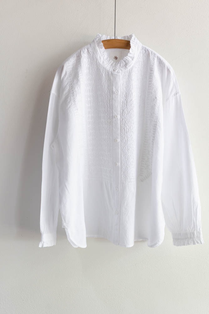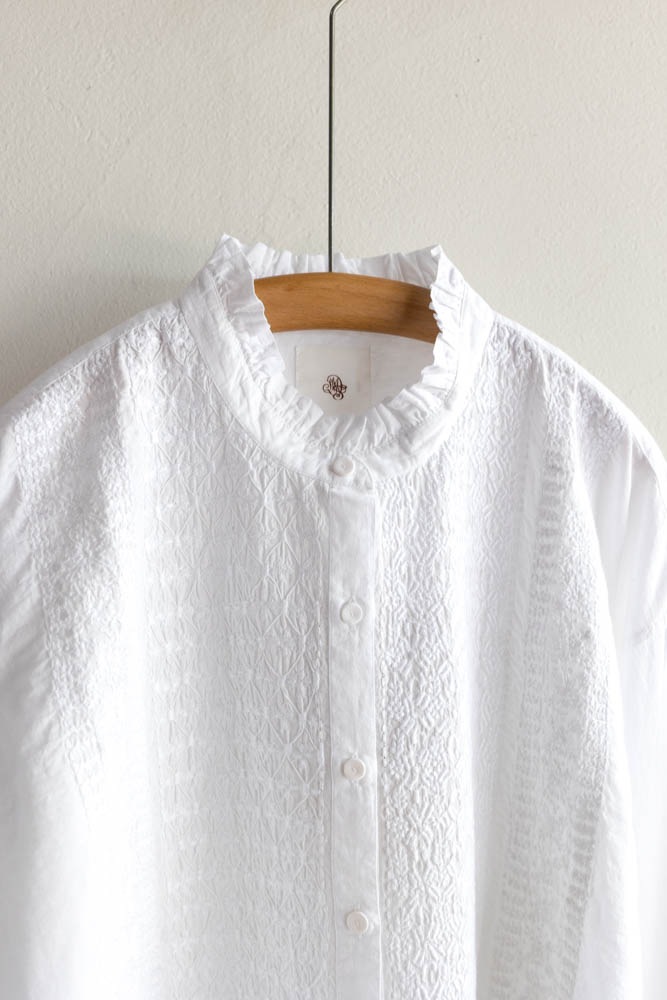 maison de soil メゾンドソイル | 60'S ORGANIC CAMBRIC FRILL COLLAR EMB SHIRT Col : WHITE