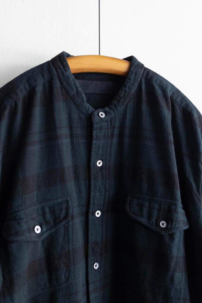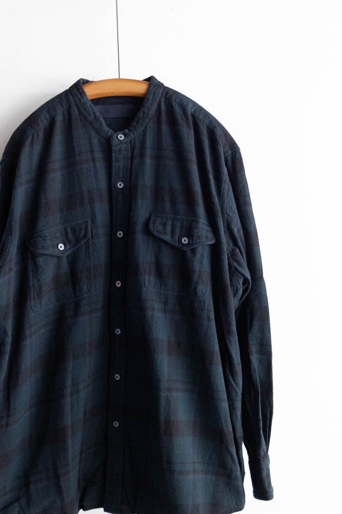 Vas-y Lentement ヴァジーラントモン | BANDED COLLAR L/SL OVERSIZED SHIRT Col : MARINE