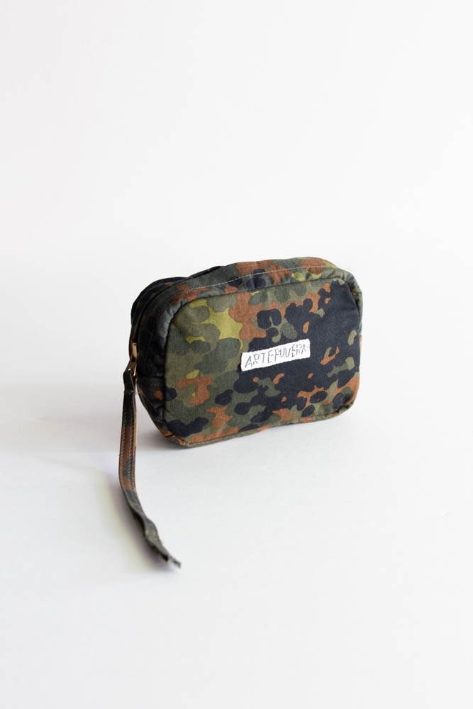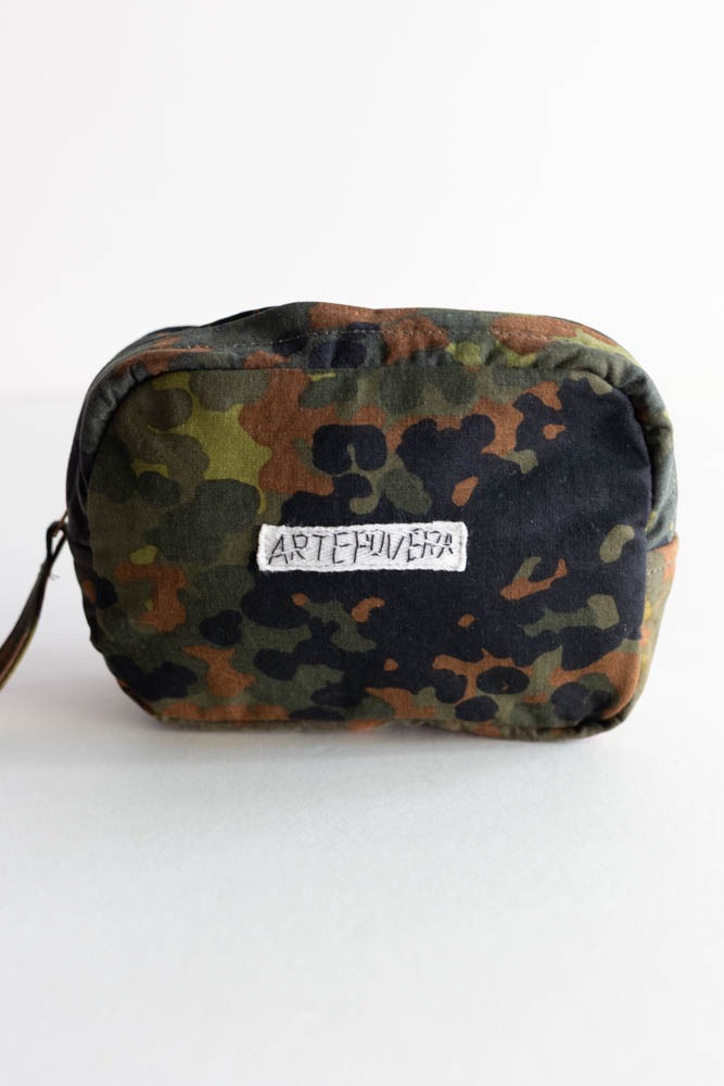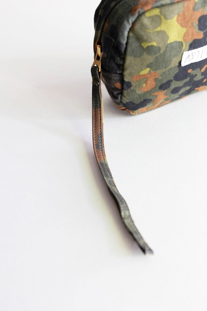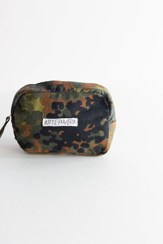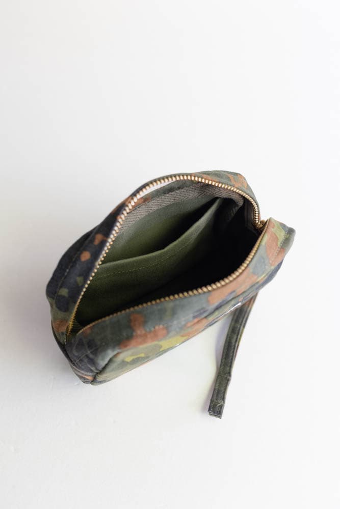 ドイツ軍のカモフラテント素材をリメイクしたボックスポーチ。
