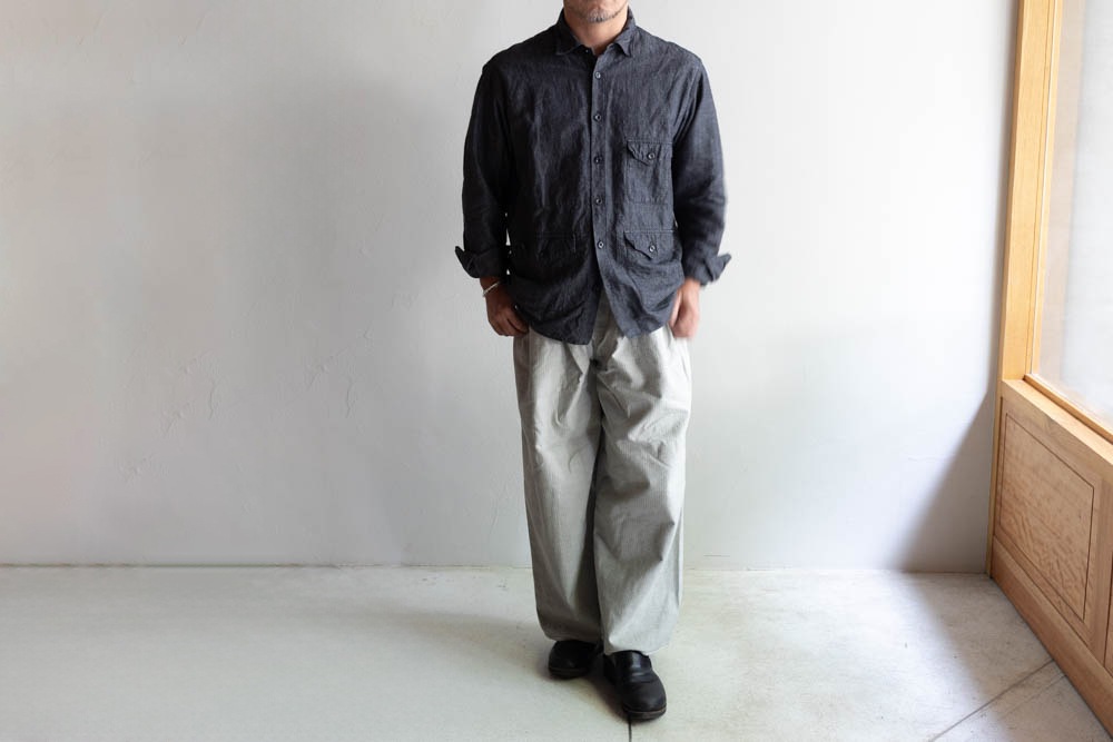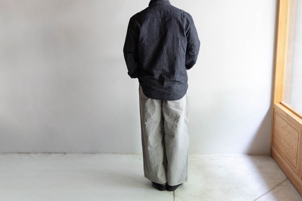 ワタリから裾にかけてストンと落ちる太めのシルエット。