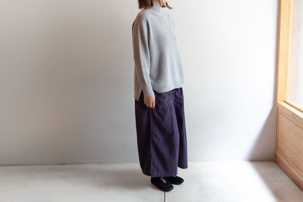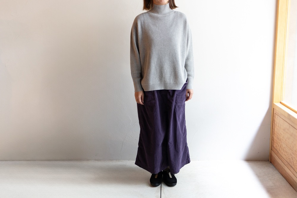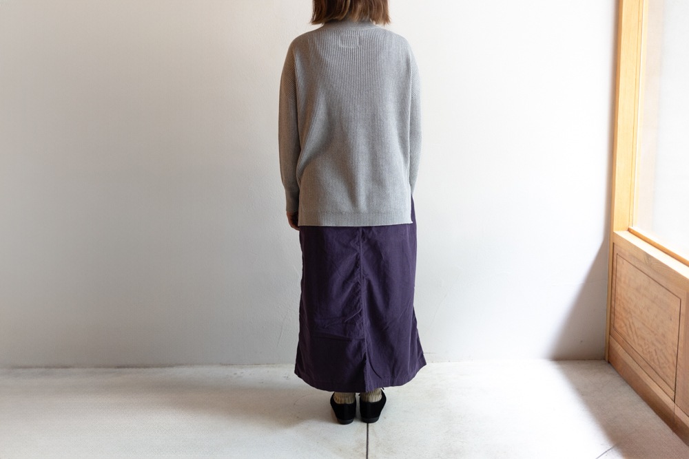 26W(ウェール)の細畝コーデュロイを使用して製品染めを施したHTSのイージースカート。