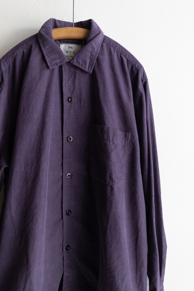 HTS (HARROW TOWN STORES) | 26 WALES CORDUROY OVERDYE ONE-UP COLLAR SHIRT Col : AUBERGINE