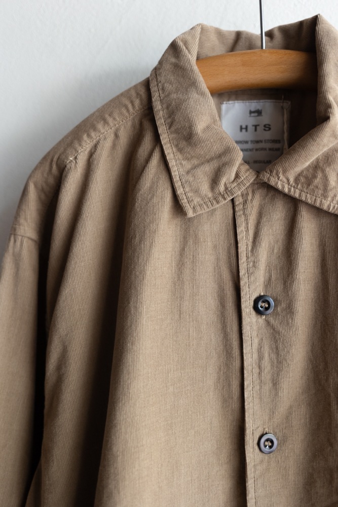 26W(ウェール)の細畝コーデュロイを使用して製品染めを施したHTSのシャツ。
