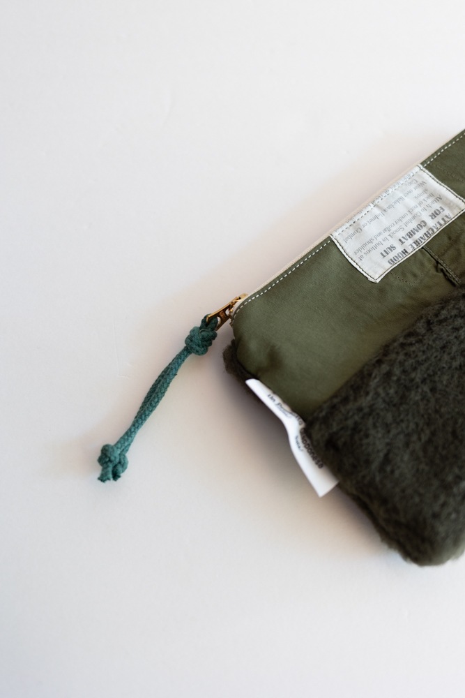 フランス軍のボア素材を組み合わせて仕立てたポーチです。