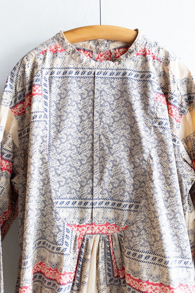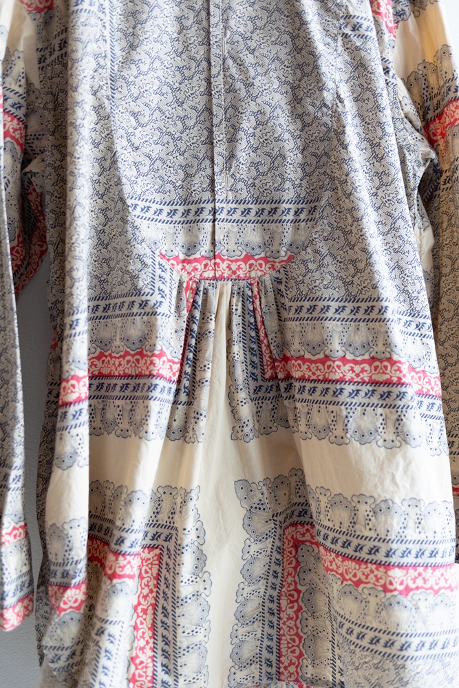 ブルー部分はインディゴプリントになり地色合わせて4色で柄を表現しています。