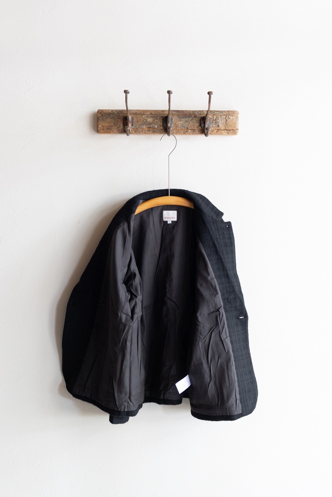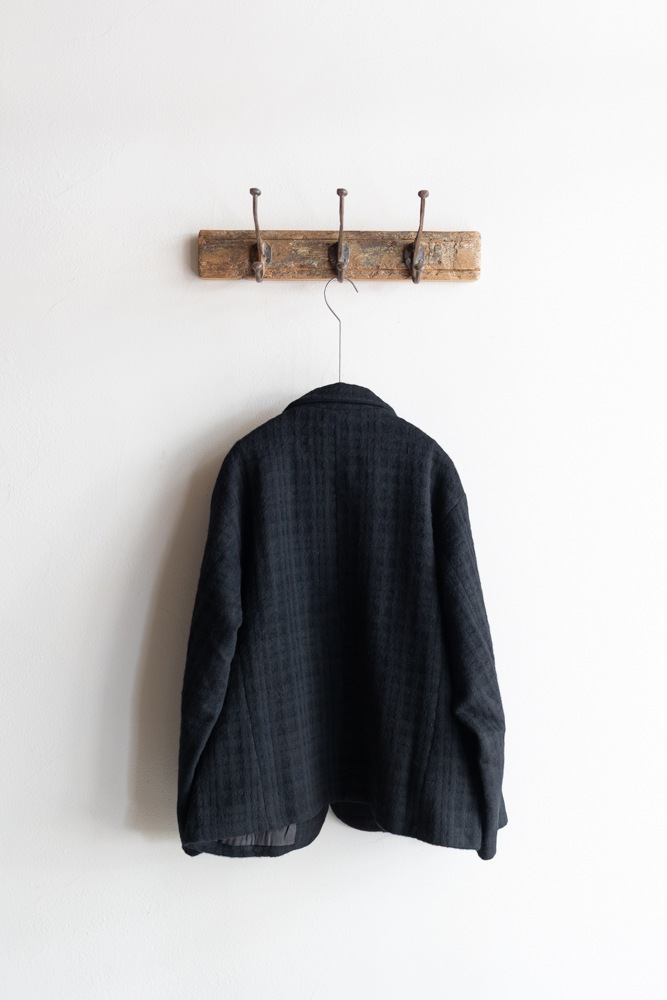黒地に織りで表現されたさりげないチェック柄は、光の加減で奥行きを感じさせ、