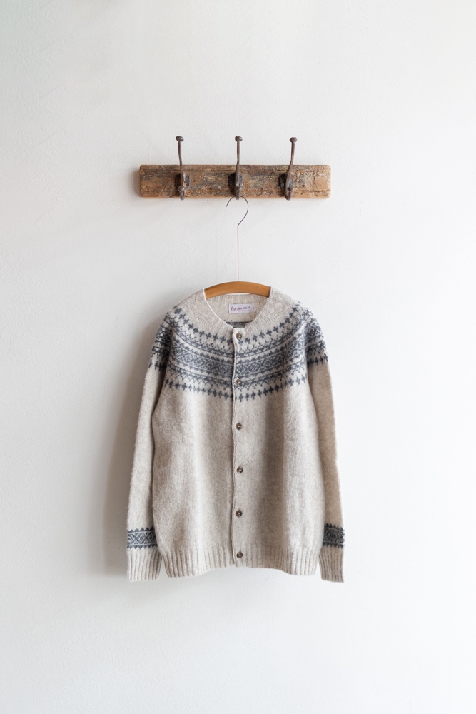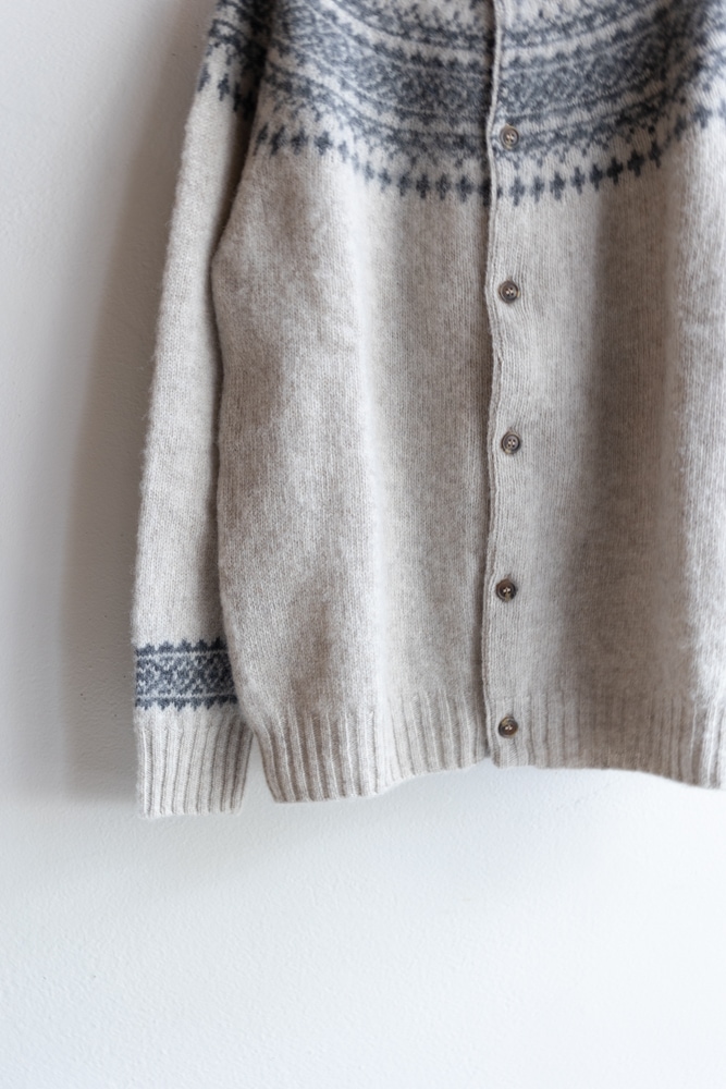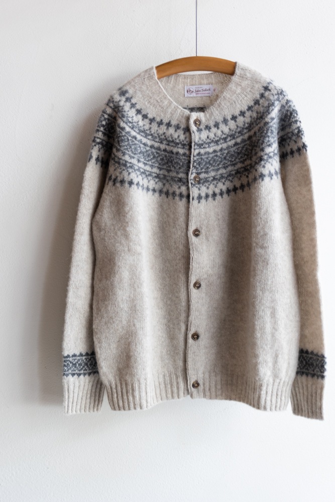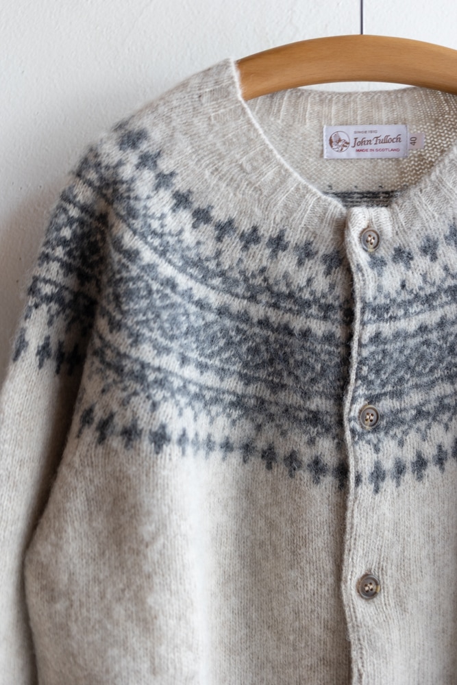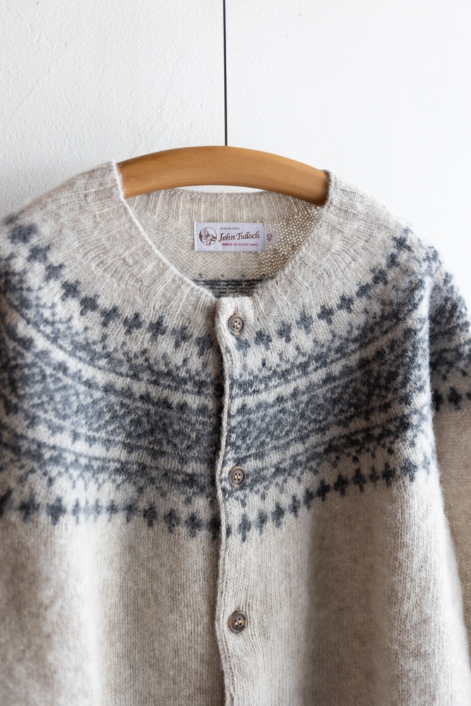 JOHN TULLOCH ジョンタロック | SHETLAND WOOL NORDIC HEAVY BRUSH CREW NECK CARDIGAN Col : LT.BEIGE×DK.GREY