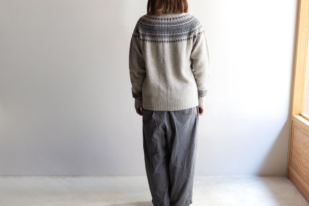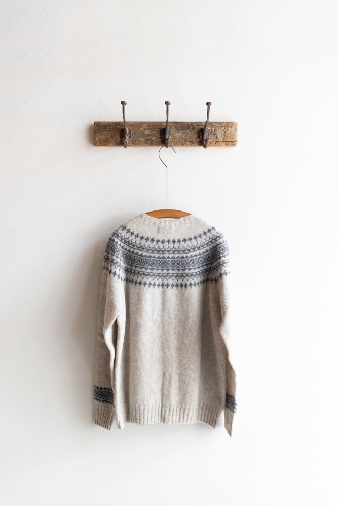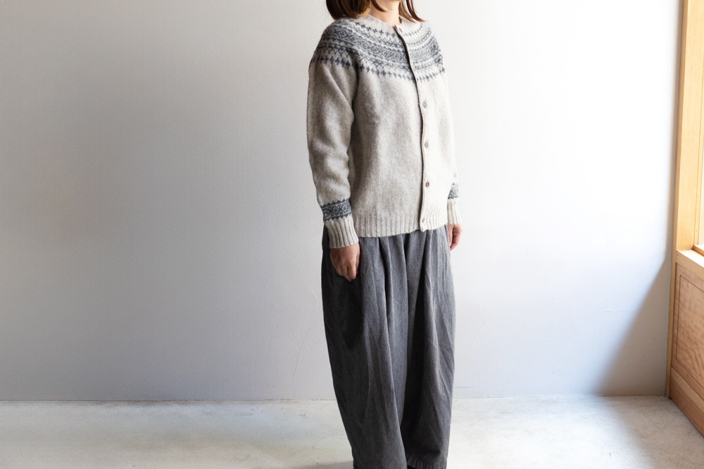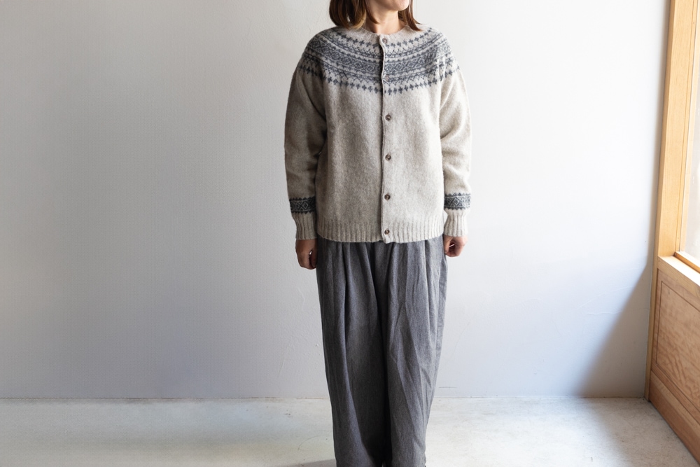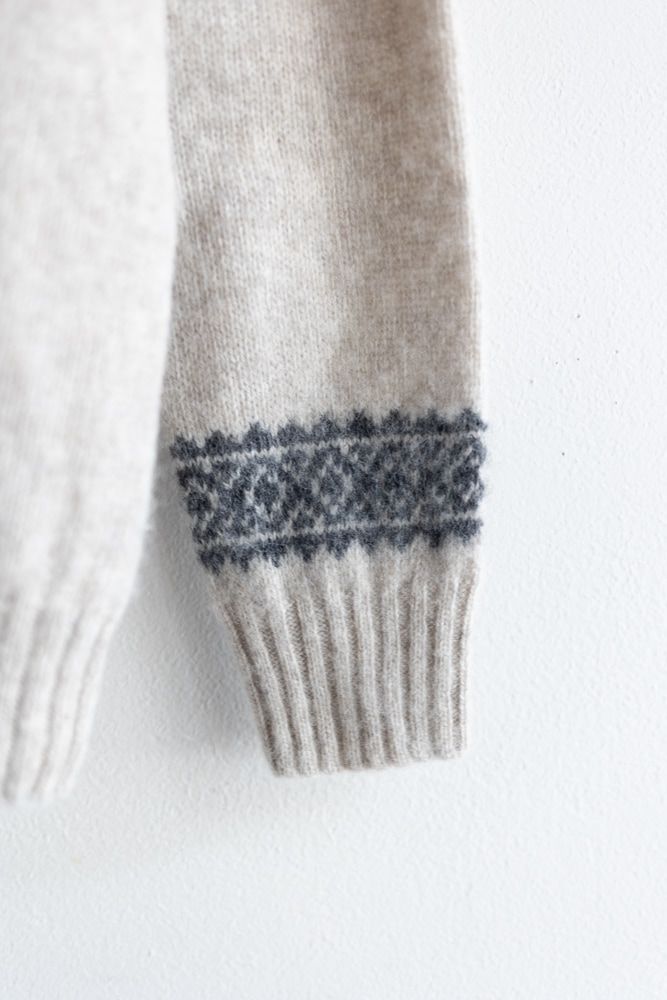 JOHN TULLOCH ジョンタロック | SHETLAND WOOL NORDIC HEAVY BRUSH CREW NECK CARDIGAN Col : LT.BEIGE×DK.GREY